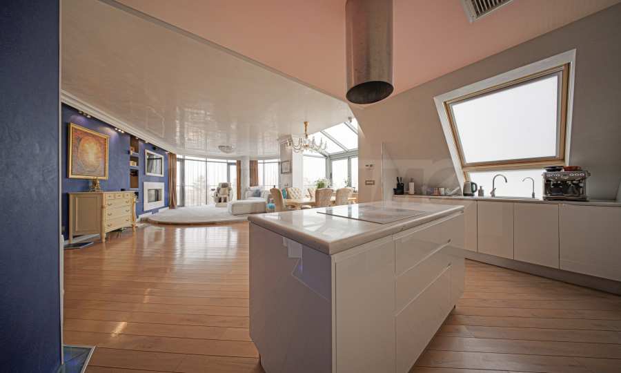 Mieszkanie charakteryzuje się doskonale zaaranżowanymi przestrzeniami i bezkompromisową jakością materiałów. Wysokie sufity, miejscami sięgające nawet 3 metrów, tworzą wrażenie przestronności w całym obiekcie. Winda w budynku zatrzymuje się bezpośrednio w mieszkaniu, a dostęp do tego piętra mają wyłącznie właściciele poprzez chip.