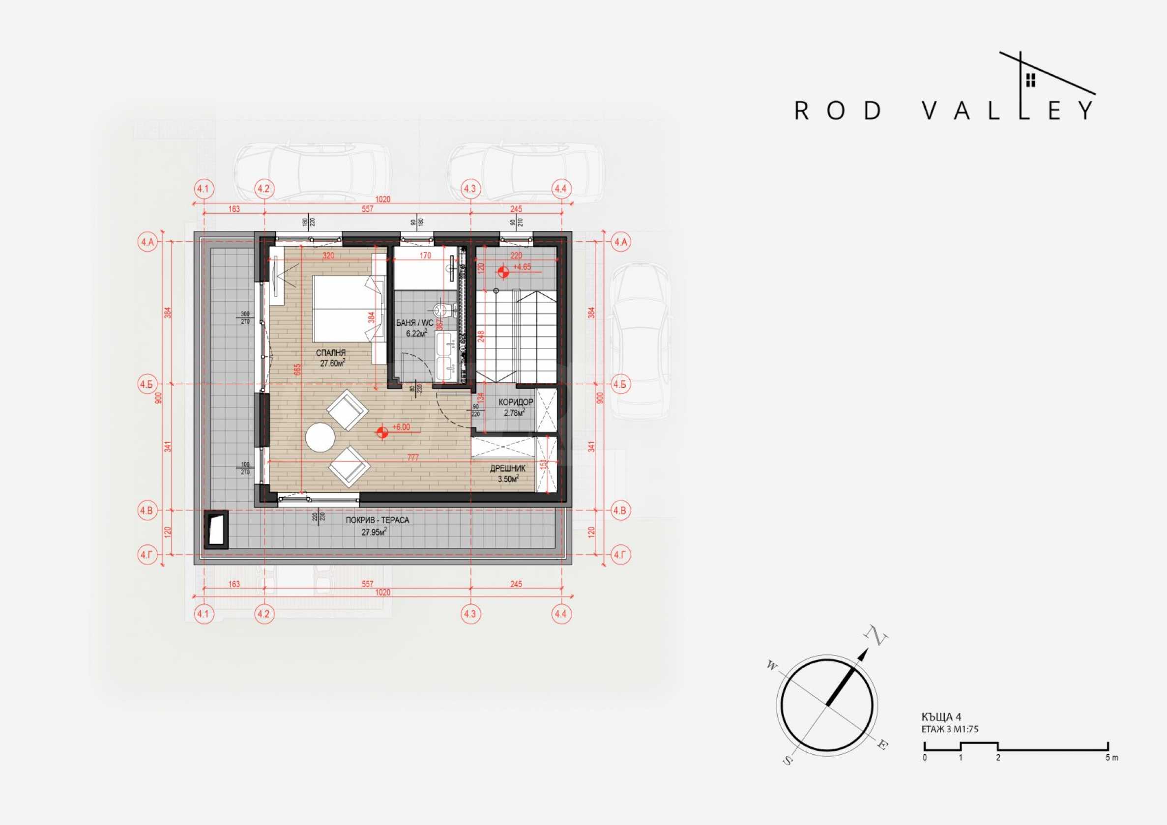 Układ domu zapewnia wygodę i funkcjonalność. Na pierwszym piętrze znajduje się przestronny salon z jadalnią i kuchnią, toaleta dla gości, pomieszczenie gospodarcze oraz weranda z miejscem do grillowania. Na drugim piętrze znajduje się główna sypialnia z prywatną łazienką i toaletą, dwie dodatkowe sypialnie oraz kolejna łazienka z toaletą. Trzecie piętro przeznaczone jest na sypialnię z łazienką, toaletą i garderobą oraz taras na dachu.