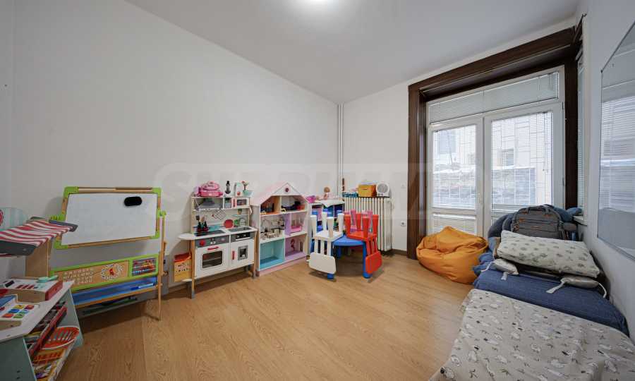 Czteropokojowe mieszkanie w idealnym centrum stolicy, przy ulicy Alabina. Nieruchomość zlokalizowana jest w budynku z 1938 roku, w bezpośrednim sąsiedztwie ulicy Knyaza Borysa I. W sąsiedztwie znajdują się słynne centralne ulice „Ivan Denkoglu”, „Car Asen”, „Car Samuil”, „Lavele”, a także place „Macedonia”, „Positano”. Położony pomiędzy charakterystycznymi bulwarami Sofii „Witosza” i „Hristo Botev”, obszar ten jest siedzibą ważnych instytucji, takich jak „Sąd”, „Administracja Regionalna Miasta Sofia”, „Bułgarska Izba Handlowa” i inne.