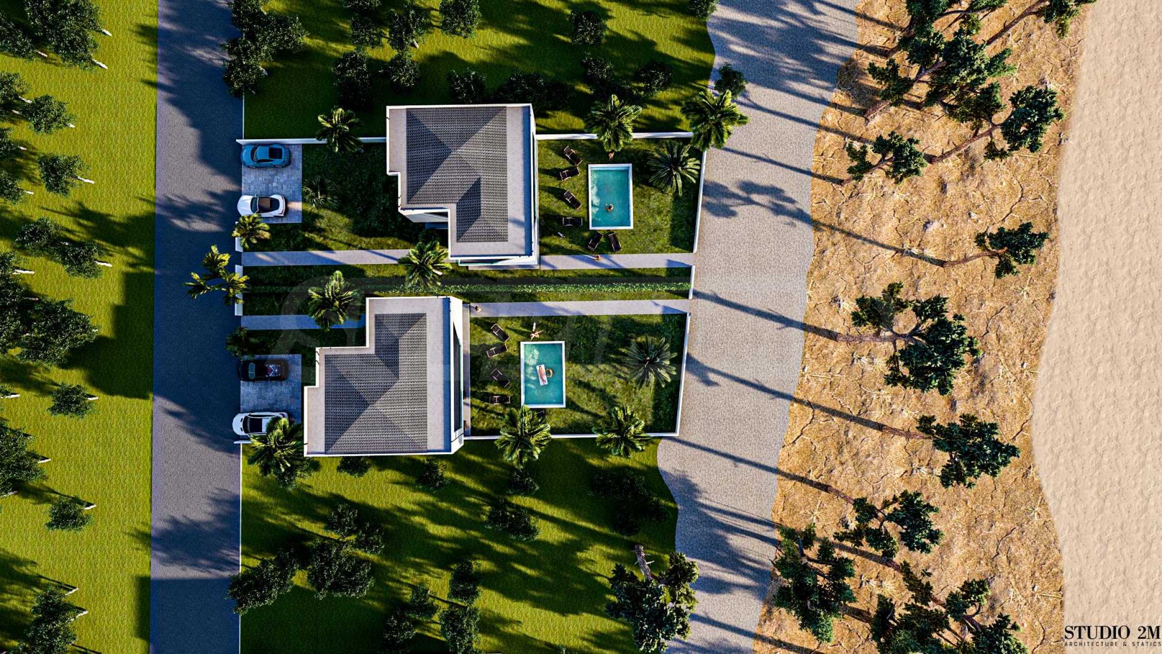 Kompleks składa się z dwóch niezależnych willi oferujących estetykę i komfort. Wille mają powierzchnię 149,14 m2, domy te są prawdziwą oazą oferującą niezrównane morskie przeżycia.