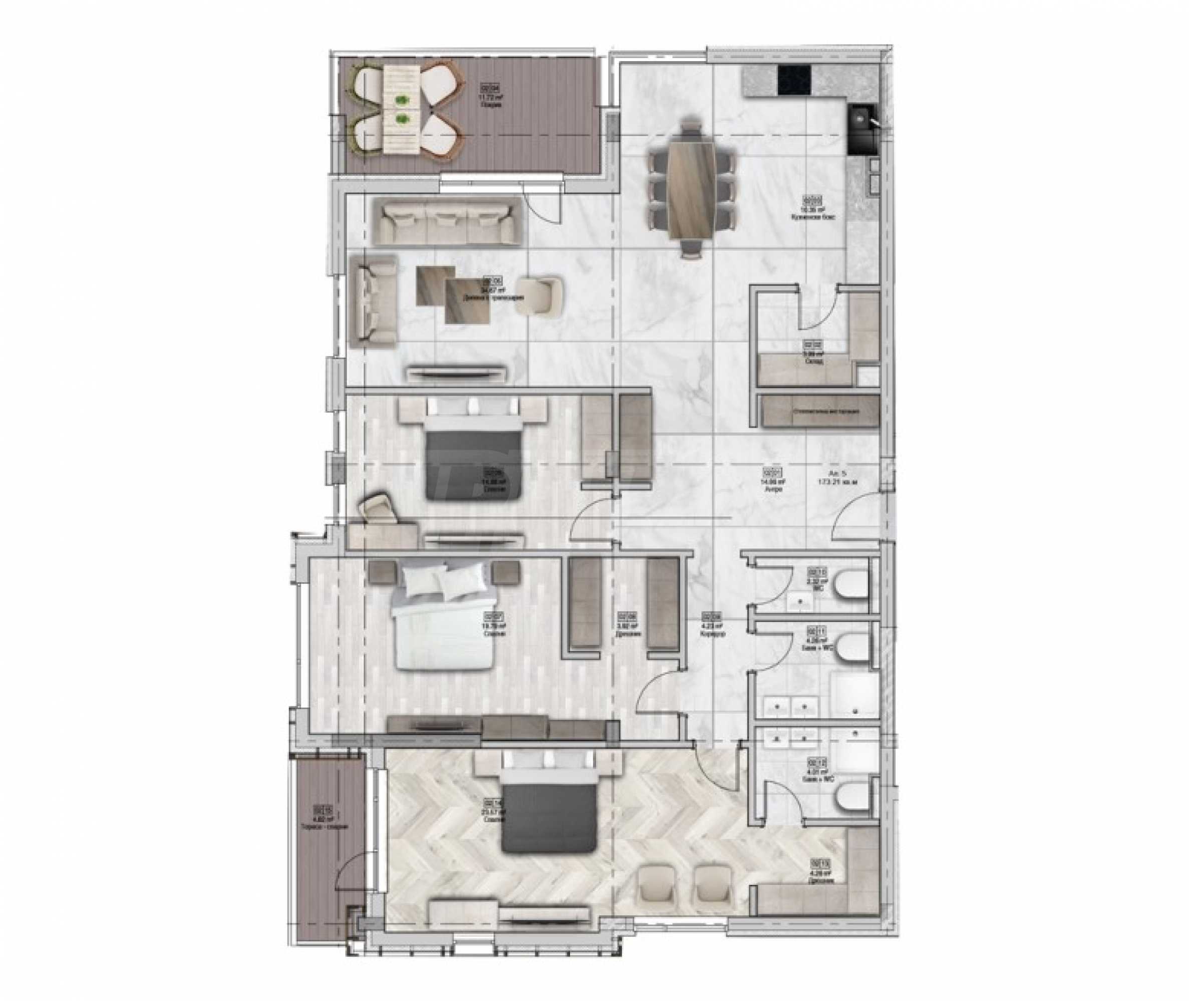 W dwóch budynkach znajdują się większe mieszkania, odpowiednie dla rodzin z dziećmi lub młodych rodzin – mieszkania trzy- i czteropokojowe o powierzchniach od 175 do 242 mkw., przestronnymi salonami i sypialniami oraz możliwość zabudowy garderoby, w niektórych przypadkach możliwość dobudowania szafy do kuchni.