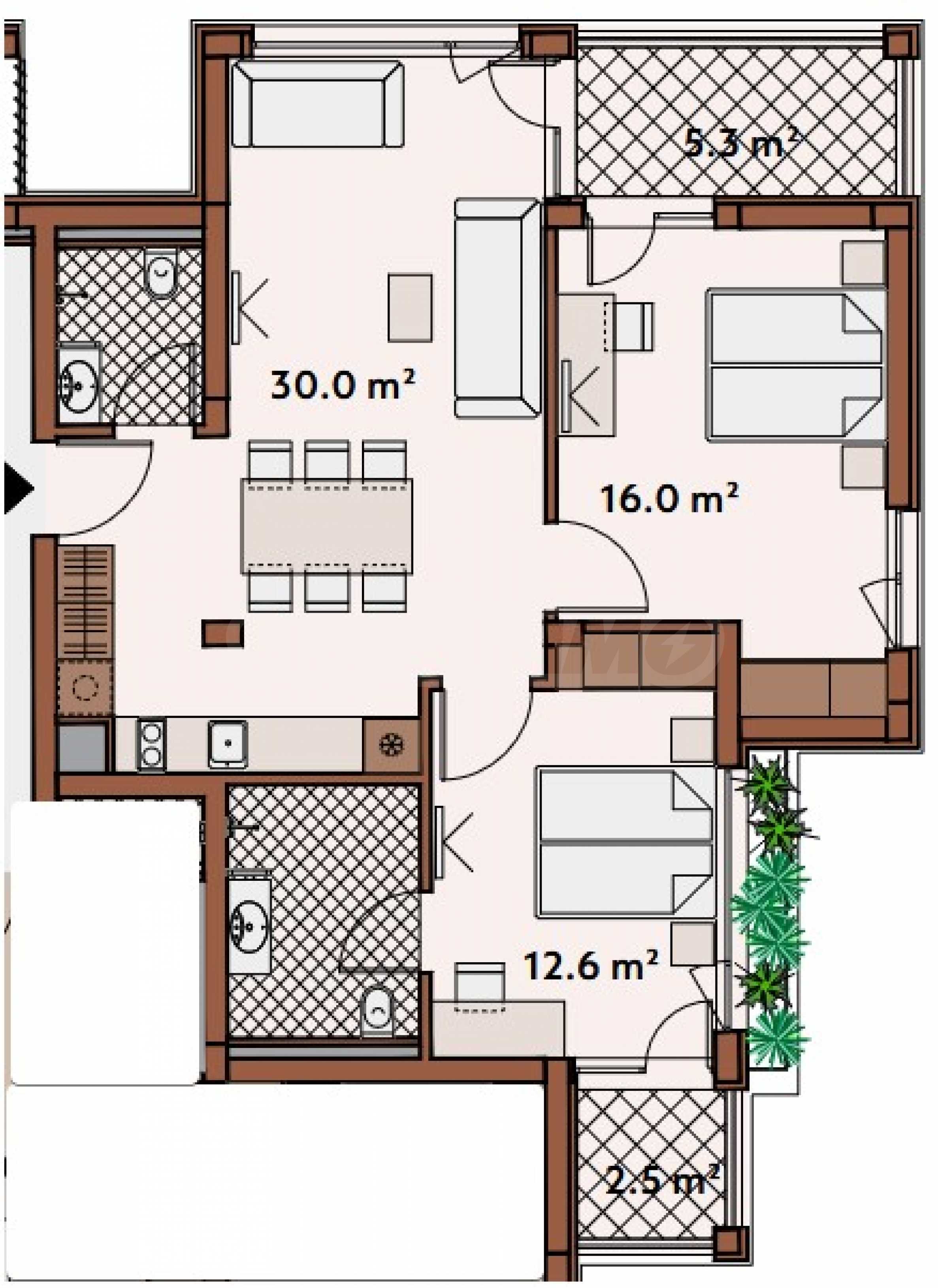 Oferujemy na sprzedaż dwupokojowe mieszkanie o powierzchni 100,45 m² w nowoczesnym, luksusowym kompleksie deweloperskim tuż przy plaży Kavatsite. W najnowszej fazie popularnego kompleksu, zaledwie 3 km od Sozopola.