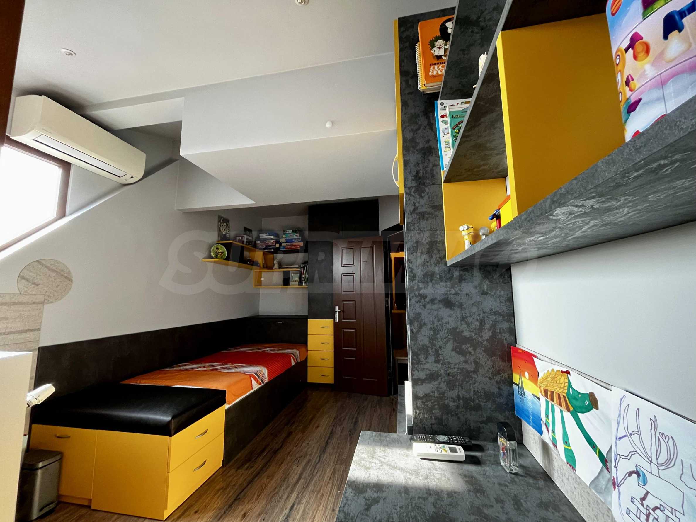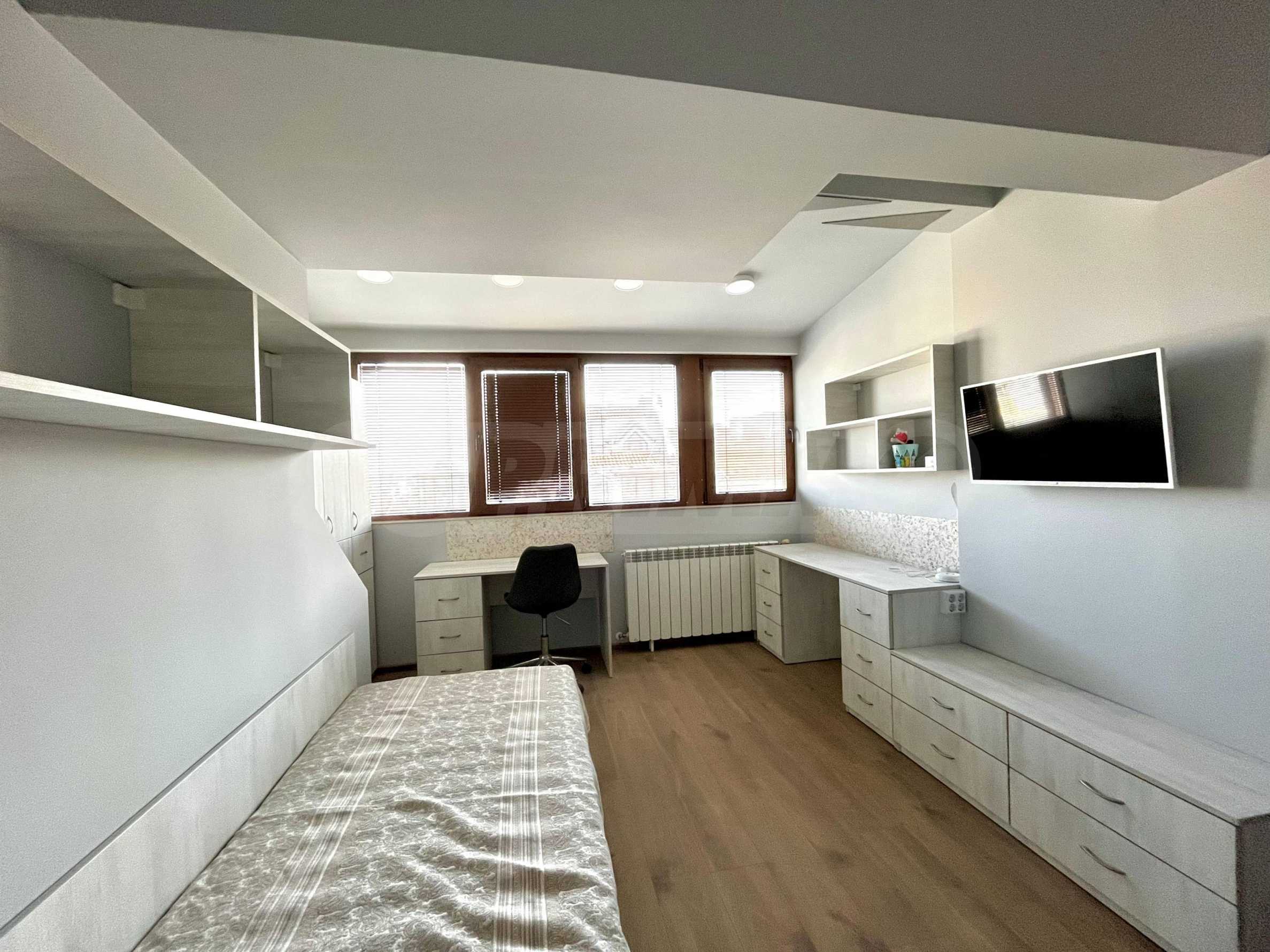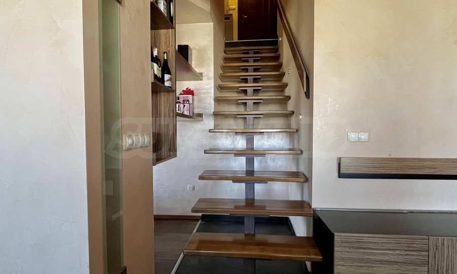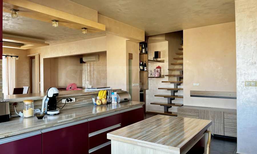 Wyłącznie prezentujemy na sprzedaż przestronny, w pełni umeblowany apartament dwupoziomowy z 4 sypialniami, z doskonałą lokalizacją w szerokim centrum Burgas.
