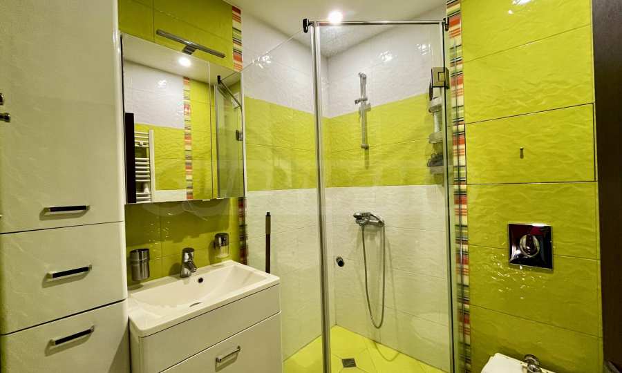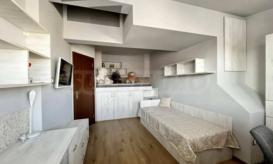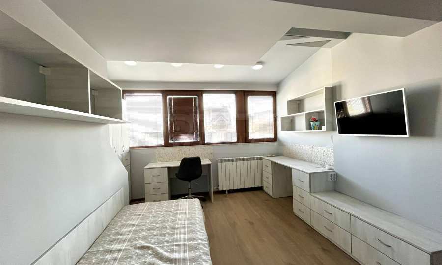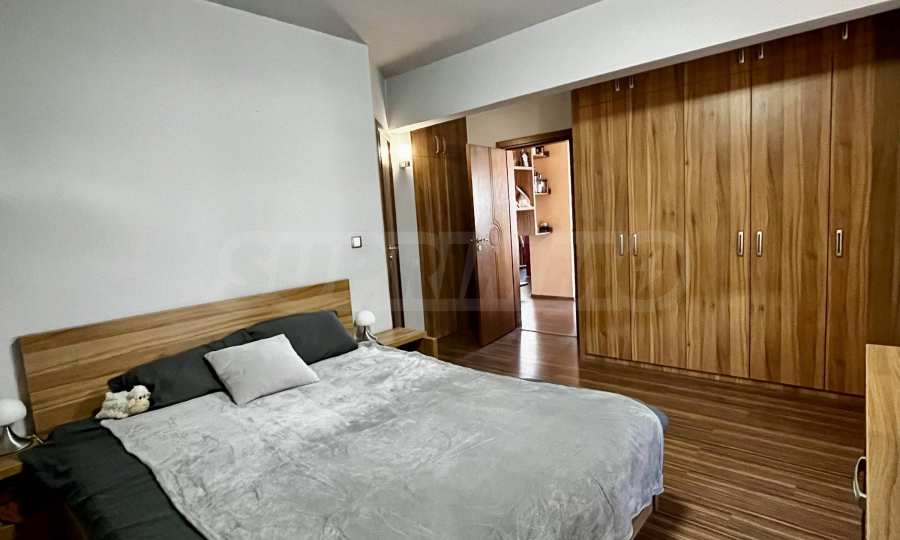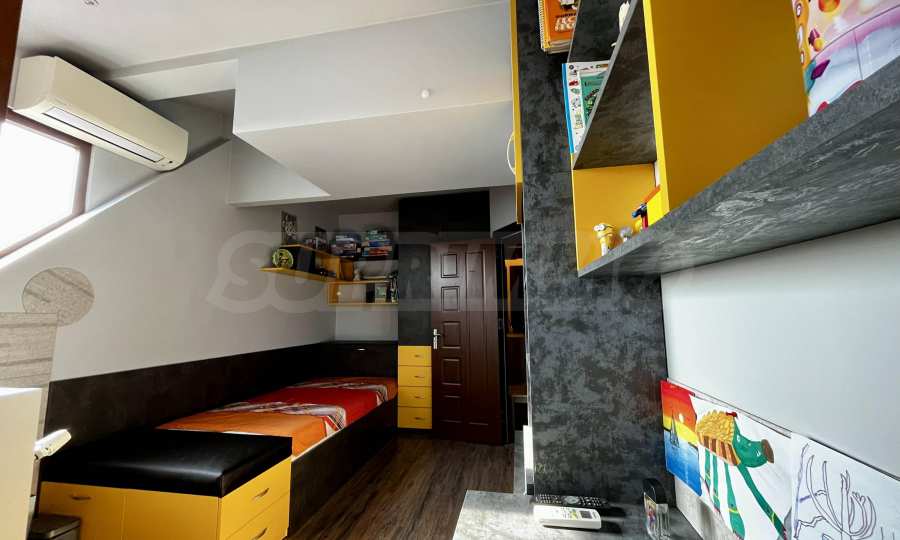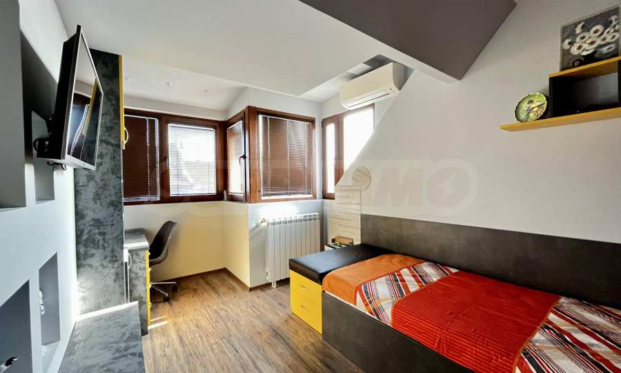 Wyłącznie prezentujemy na sprzedaż przestronny, w pełni umeblowany apartament dwupoziomowy z 4 sypialniami, z doskonałą lokalizacją w szerokim centrum Burgas.