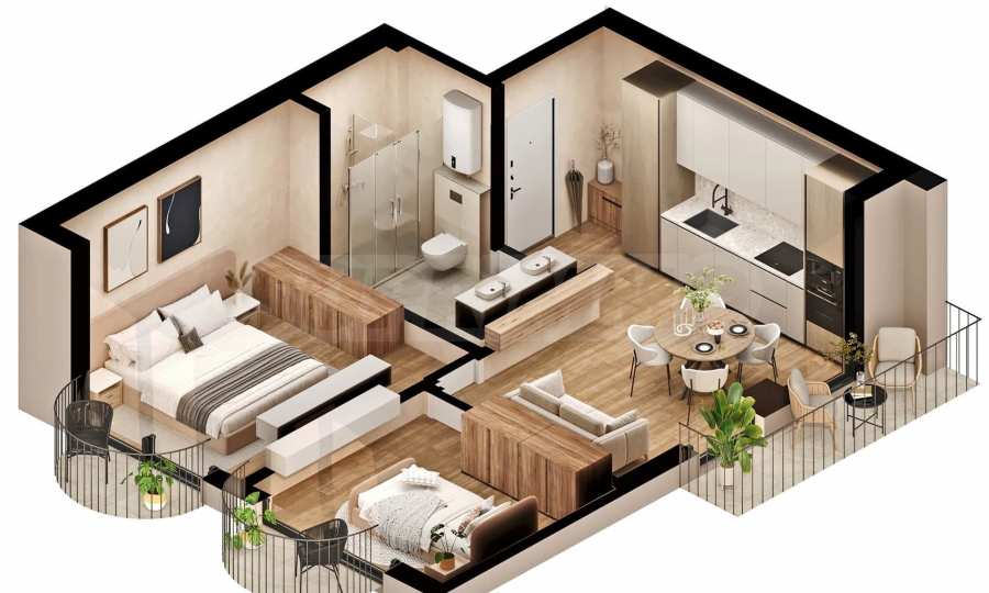 - dwie sypialnie;