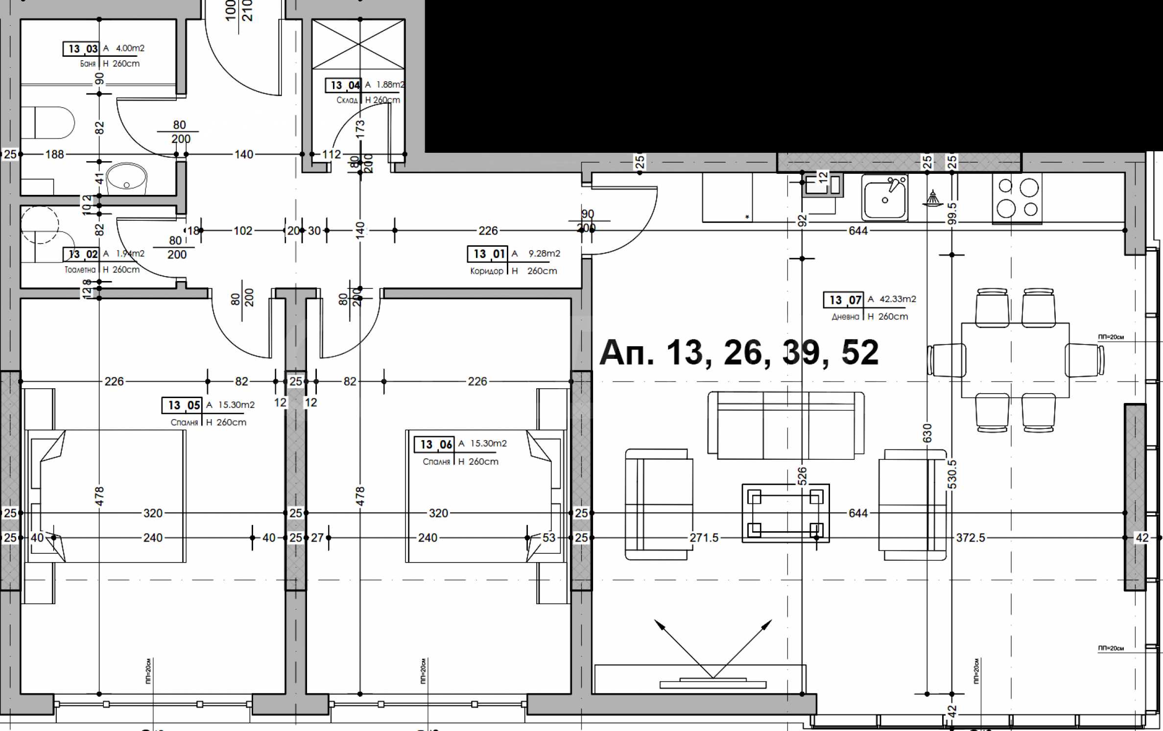Mieszkania przekazywane są w stopniu wykończenia zgodnym z bułgarskim kodeksem cywilnym: