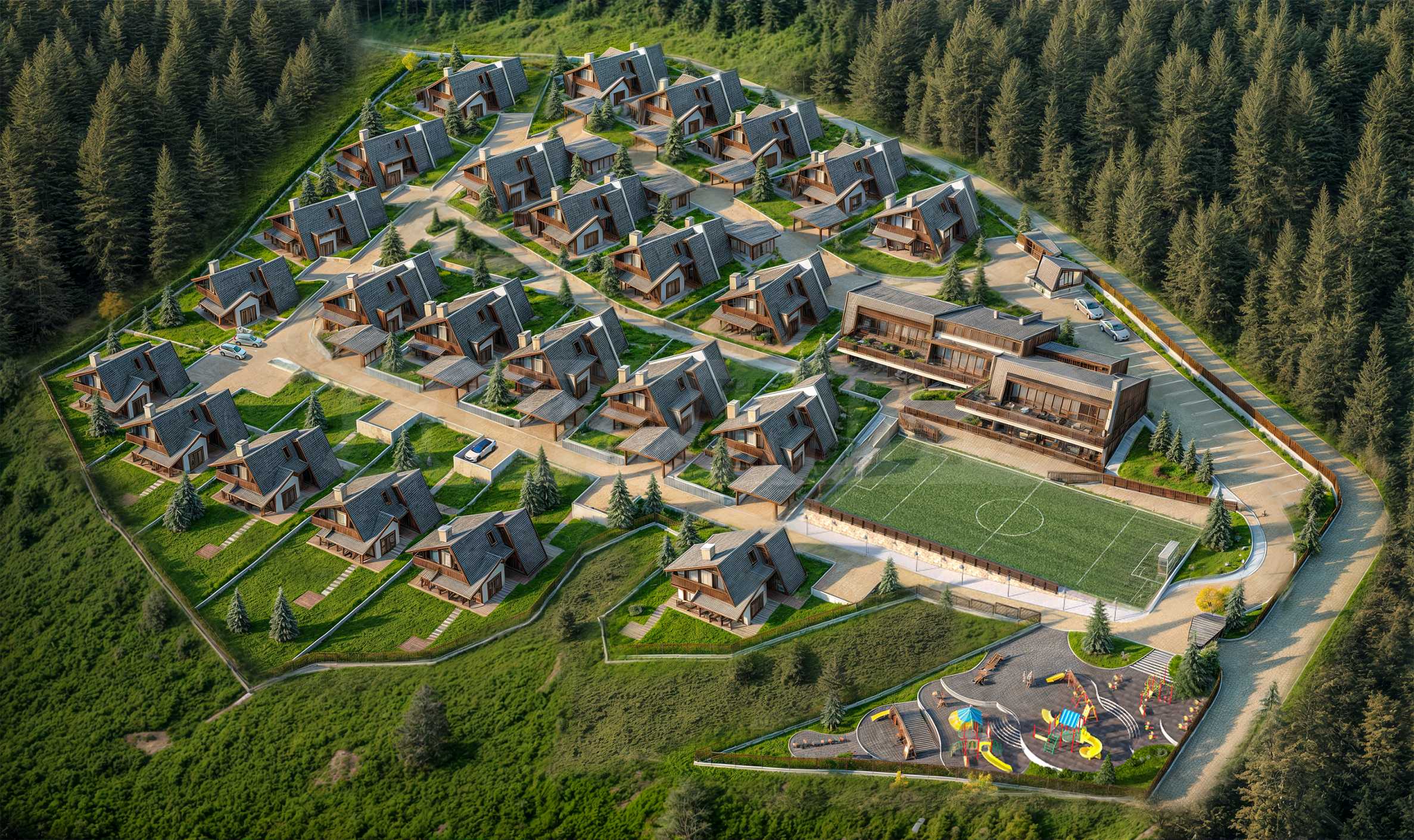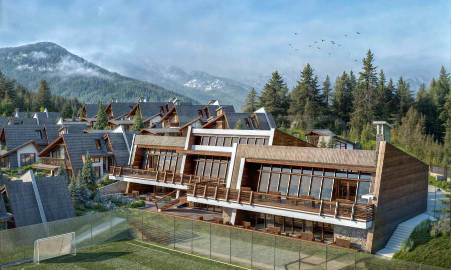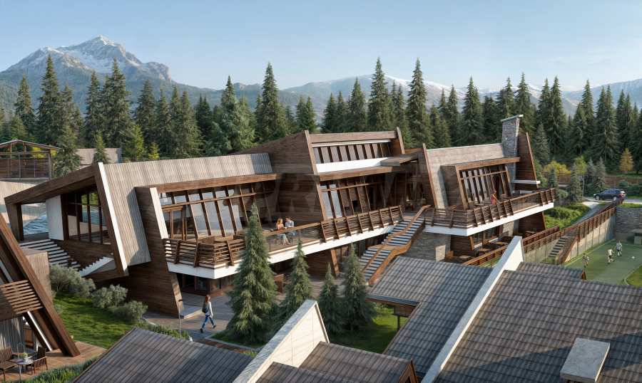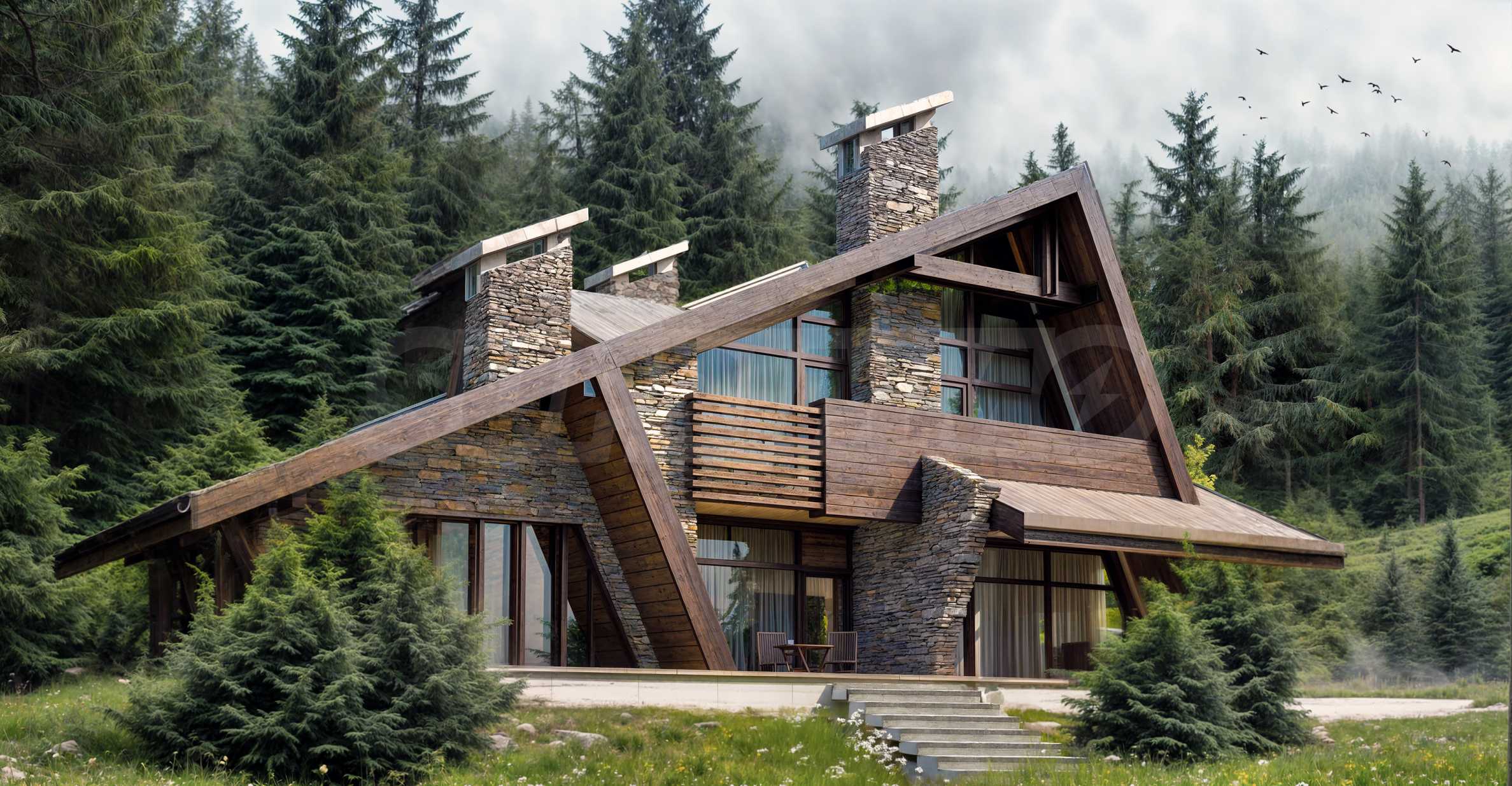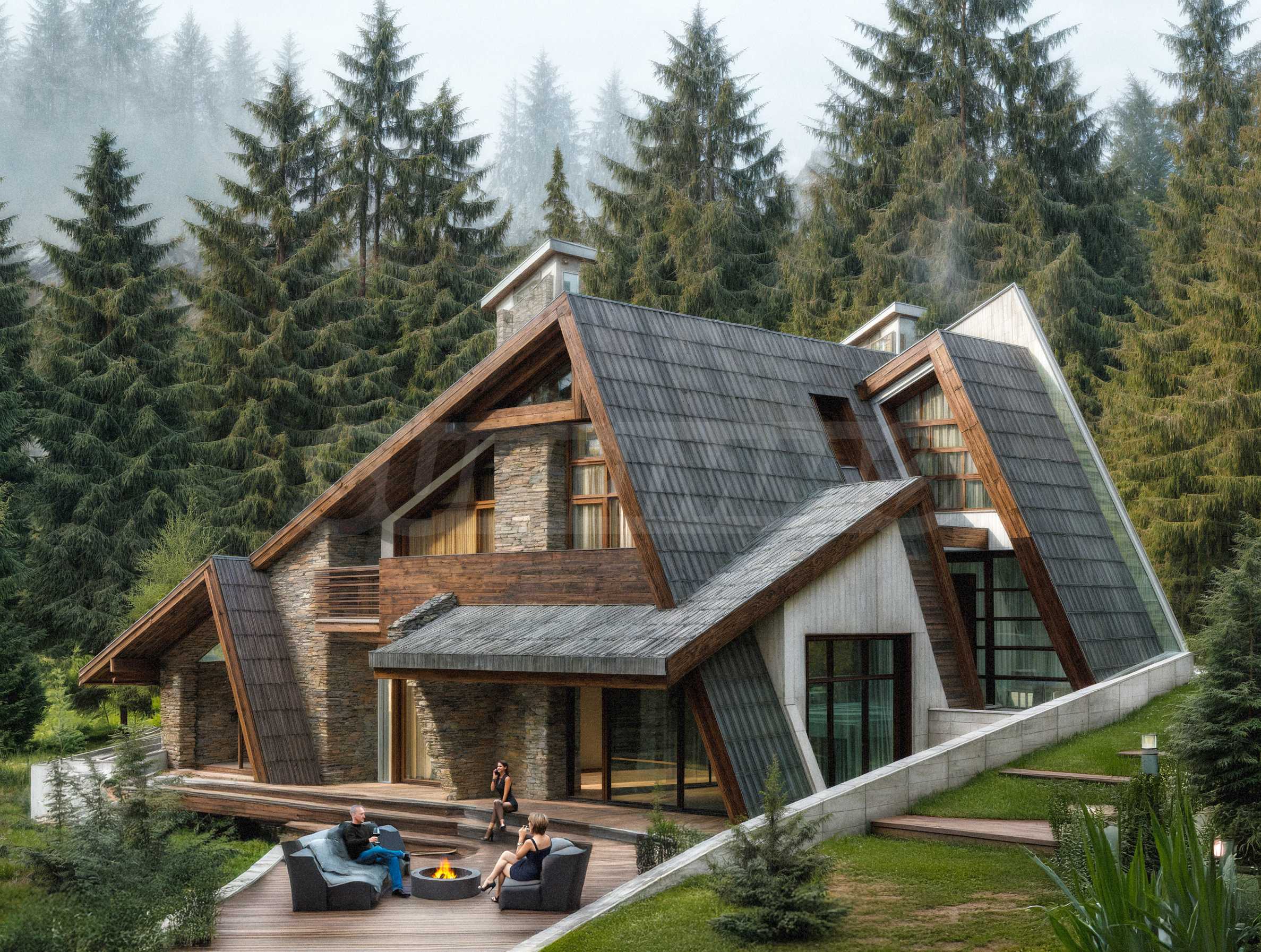 Imponujące domy zaprojektowano w nowoczesnym stylu alpejskim, łączącym tradycyjne elementy z nowoczesnymi rozwiązaniami architektonicznymi. Wyróżniają się spadzistymi dachami, wykorzystaniem naturalnych materiałów, takich jak drewno i kamień, a także dużymi przeszkleniami, które tworzą więź z naturą. Projekt jest dynamiczny i niekonwencjonalny, z asymetrycznymi liniami i oryginalnymi kątami, które nadają nowoczesny wygląd, zachowując jednocześnie poczucie przytulności i ciepła. Architektura domów idealnie wpisuje się w górskie środowisko, oferując komfort, estetykę i funkcjonalność w jednym.