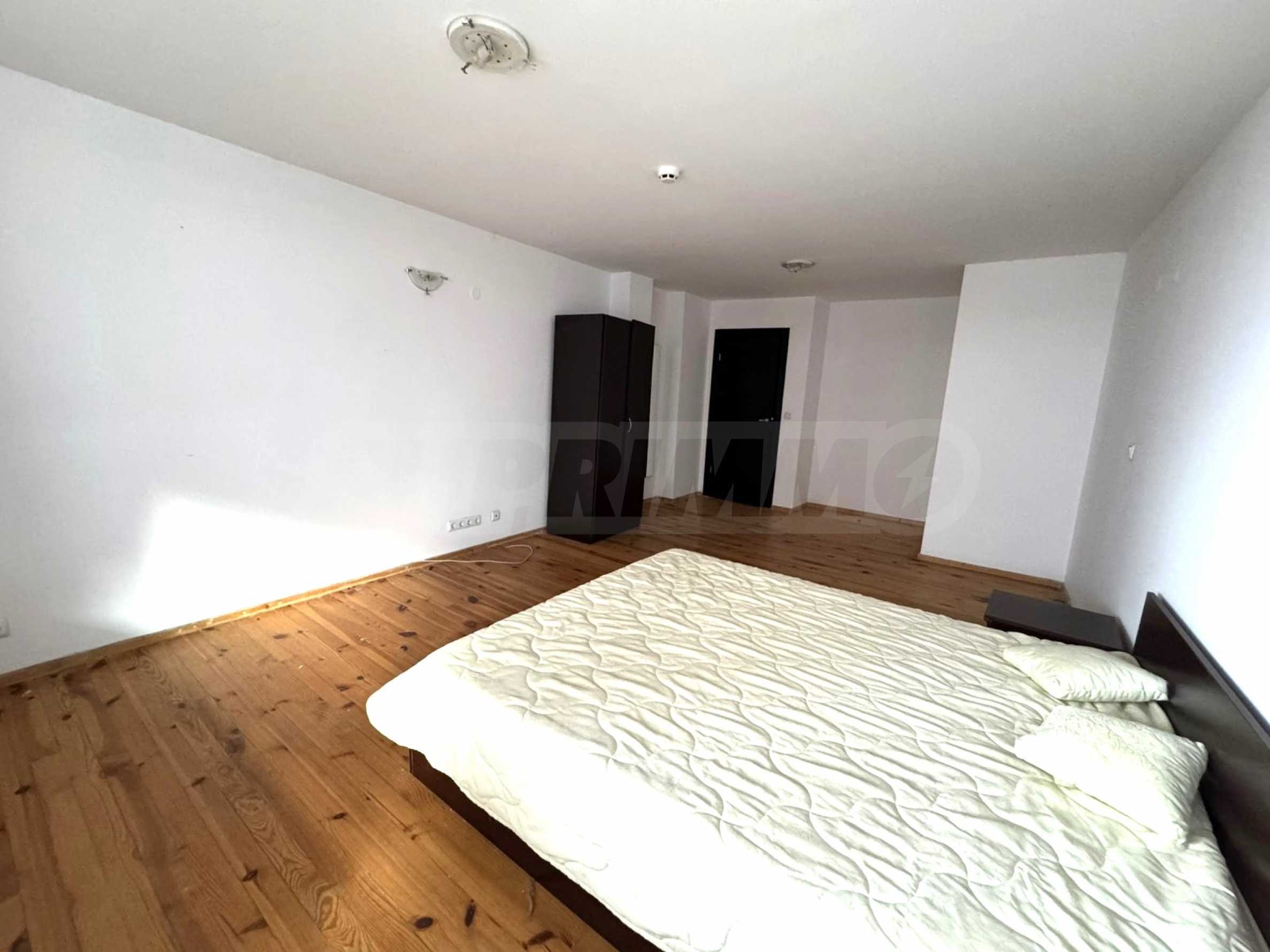 - Na drugim poziomie: duża sypialnia, garderoba i przestronny taras, z którego widać ośnieżone szczyty Pirinu i Riły;