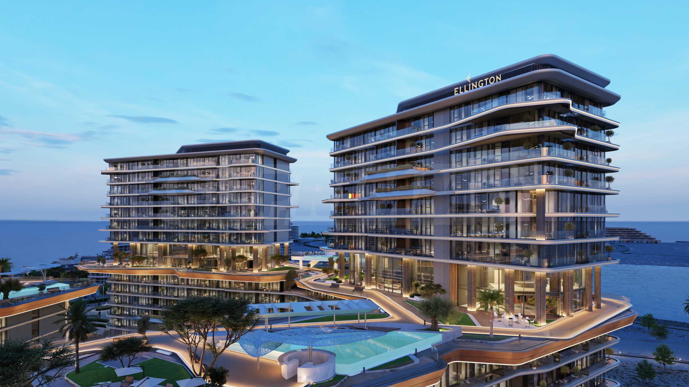Kompleks położony jest na pierwszej linii brzegowej i oferuje wspaniałe widoki nie tylko na Zatokę Perską, ale także na bezkresny horyzont. Projekt składa się z czterech charakterystycznych budynków o wysokości 20 pięter, połączonych ze sobą mostami. Oprócz łatwego dostępu do udogodnień oferowanych przez sąsiednie budynki, połączenia te stanowią doskonałe miejsce do uprawiania joggingu, spacerów na świeżym powietrzu i podziwiania zapierających dech w piersiach widoków na panoramę miasta.