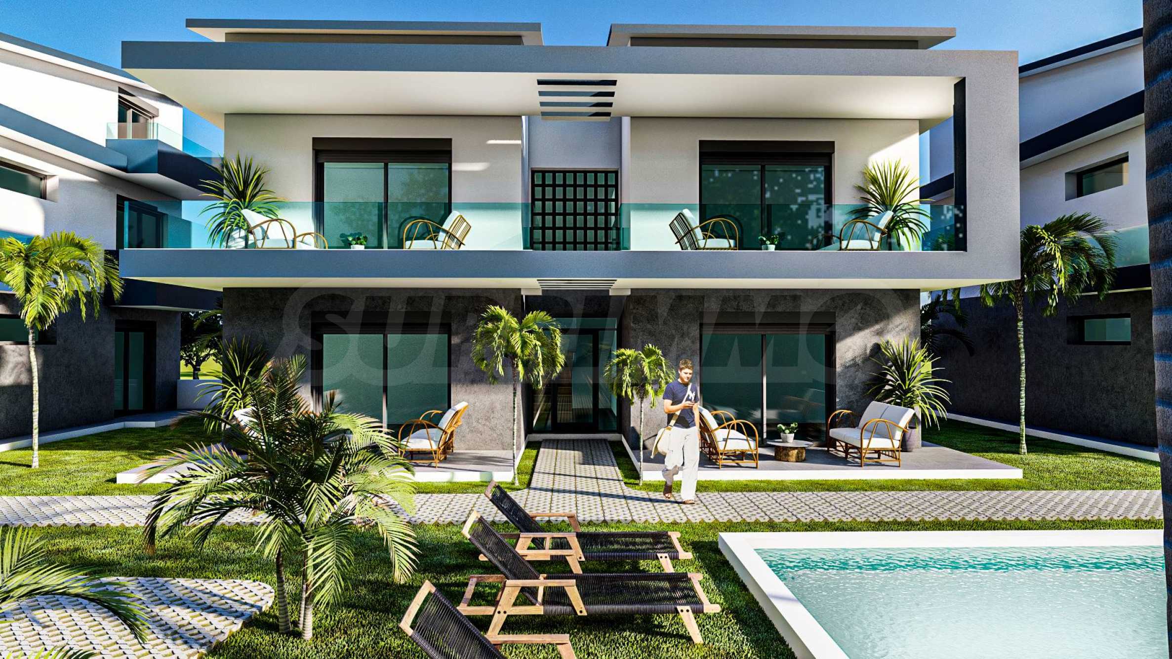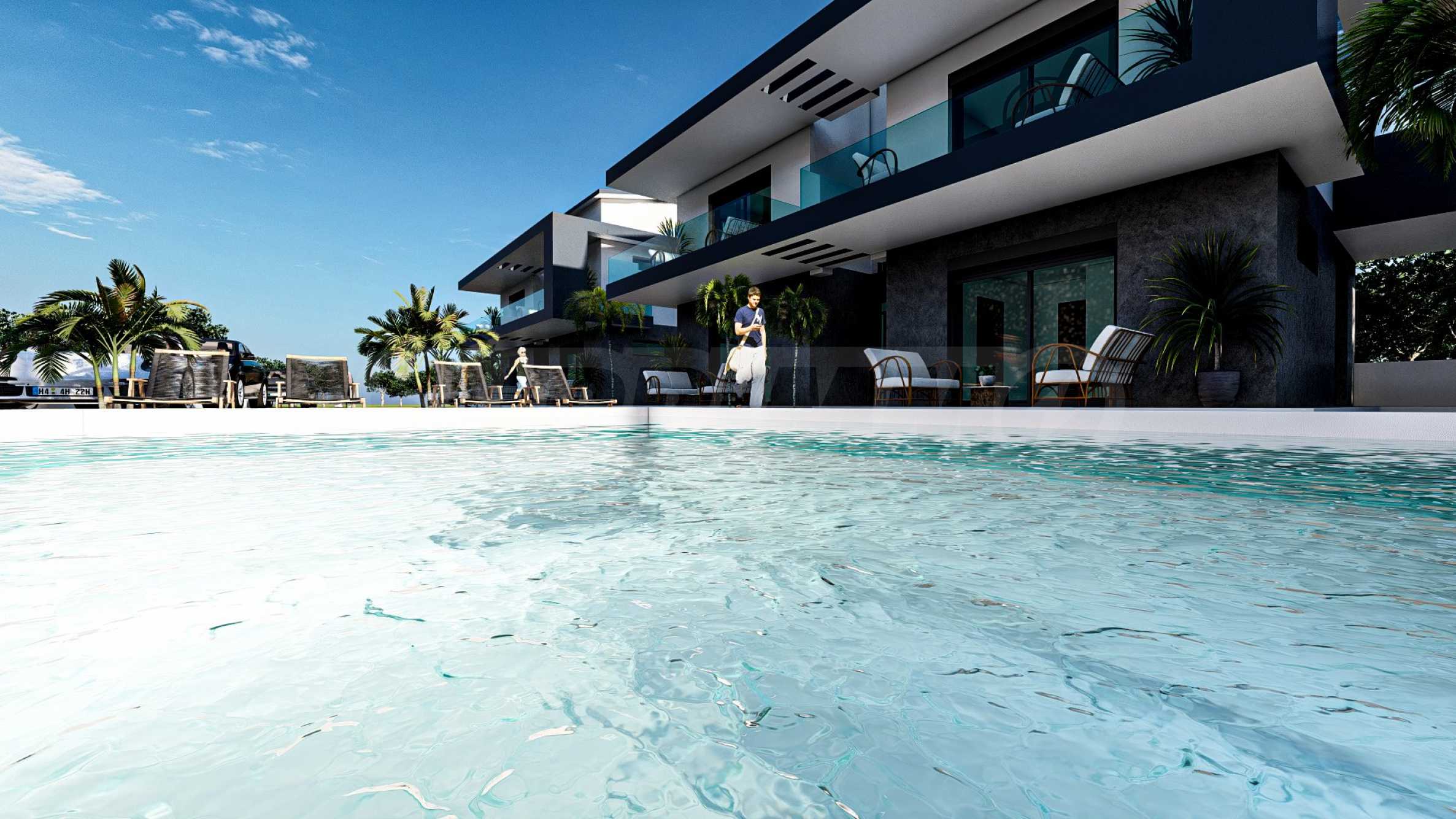 Kompleks składa się z 3 budynków i 12 apartamentów, które oferują komfort, funkcjonalność i harmonię z naturalnym otoczeniem. Apartamenty wyróżniają się stylową architekturą i przestronnymi wnętrzami, tworzącymi poczucie przytulności. Duże drzwi balkonowe wpuszczają mnóstwo naturalnego światła i zapewniają bezpośrednie wyjście na balkony, odsłaniając panoramiczne widoki na naturalne piękno wyspy.
