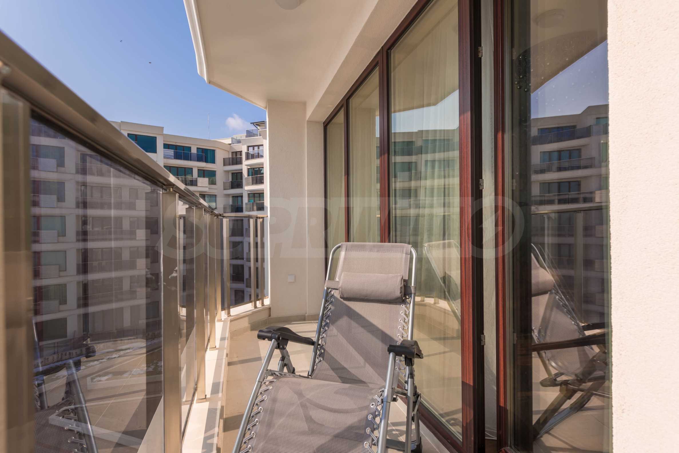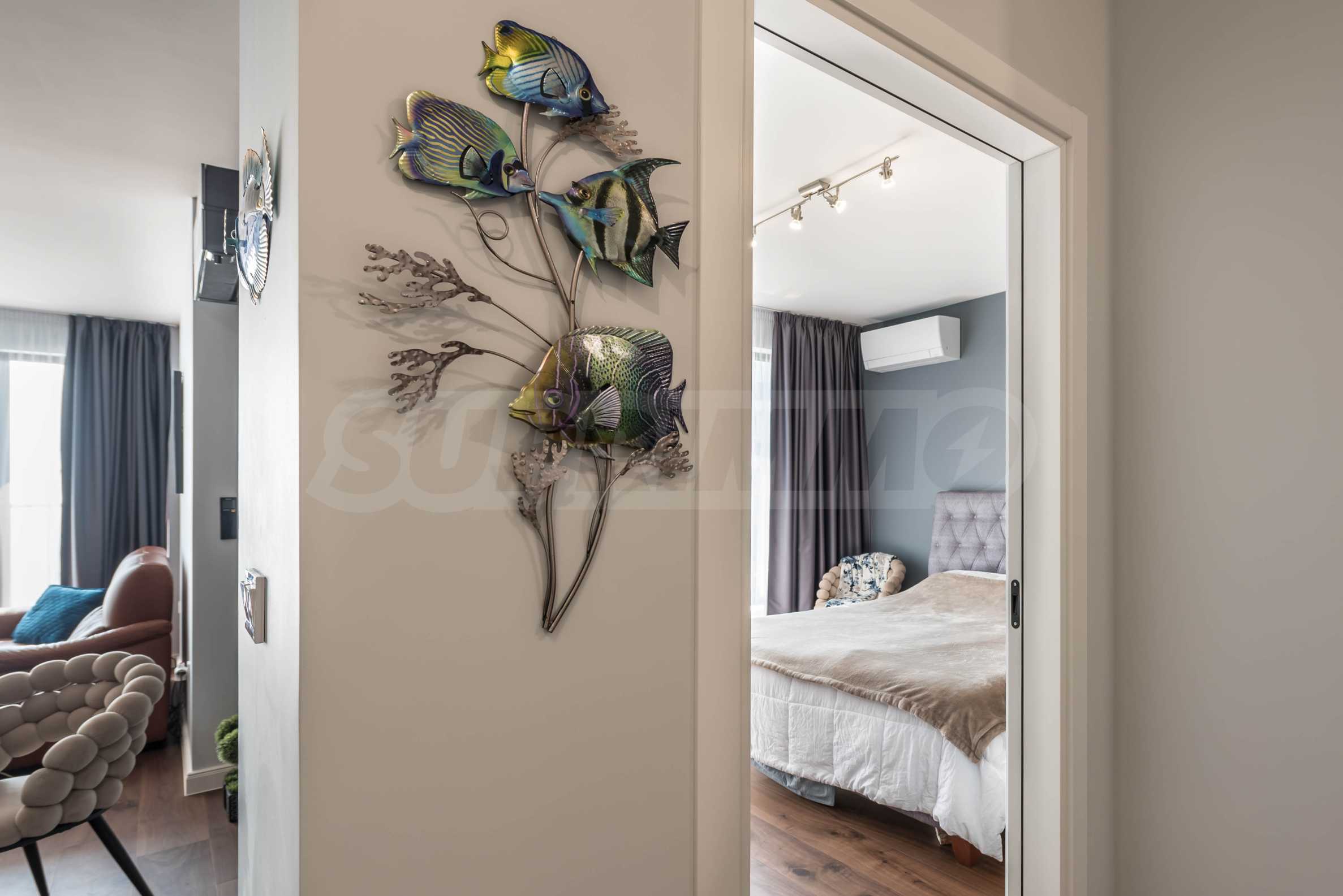 Prezentujemy luksusowy, dwupokojowy apartament w elitarnym, strzeżonym kompleksie, położonym w dzielnicy Alen Mak – znanej ze spokoju i bliskości morza. Doskonała lokalizacja między kurortem Złote Piaski a kurortem Święty Konstantyn i Elena, zaledwie kilka minut od plaży. Okolica oferuje unikalne połączenie natury, świeżego powietrza i panoramicznych widoków, a jednocześnie zapewnia szybki dostęp do miasta. W pobliżu znajdują się uniwersytety, elitarne kompleksy, sklepy i restauracje, co czyni ją idealnym miejscem zarówno do zamieszkania, jak i inwestycji.