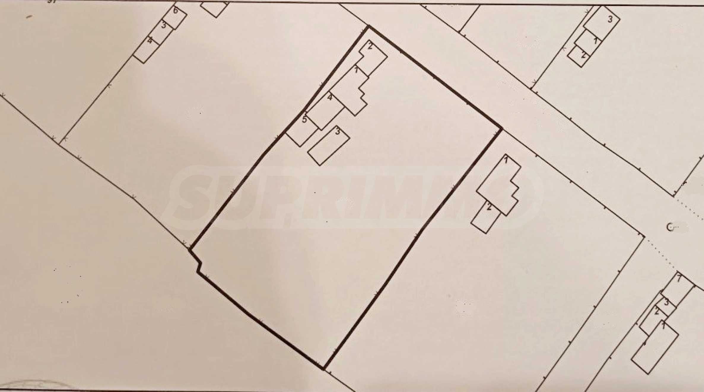 Do działki o łącznej powierzchni 2734 m2 przylegają stare kamienne budynki. Posiada niewielką wysokość i regularny, prostokątny kształt o bokach 40/67 metrów. Budynki widnieją na szkicu nieruchomości jako dwa przeznaczone na cele mieszkalne o łącznej powierzchni 93 m2 oraz pozostałe jako budynki gospodarcze o łącznej powierzchni 115 m2. Budynki te zostaną zburzone, ale mogą posłużyć jako materiał na przyszłe budowy, gdyż są wykonane z kamienia.