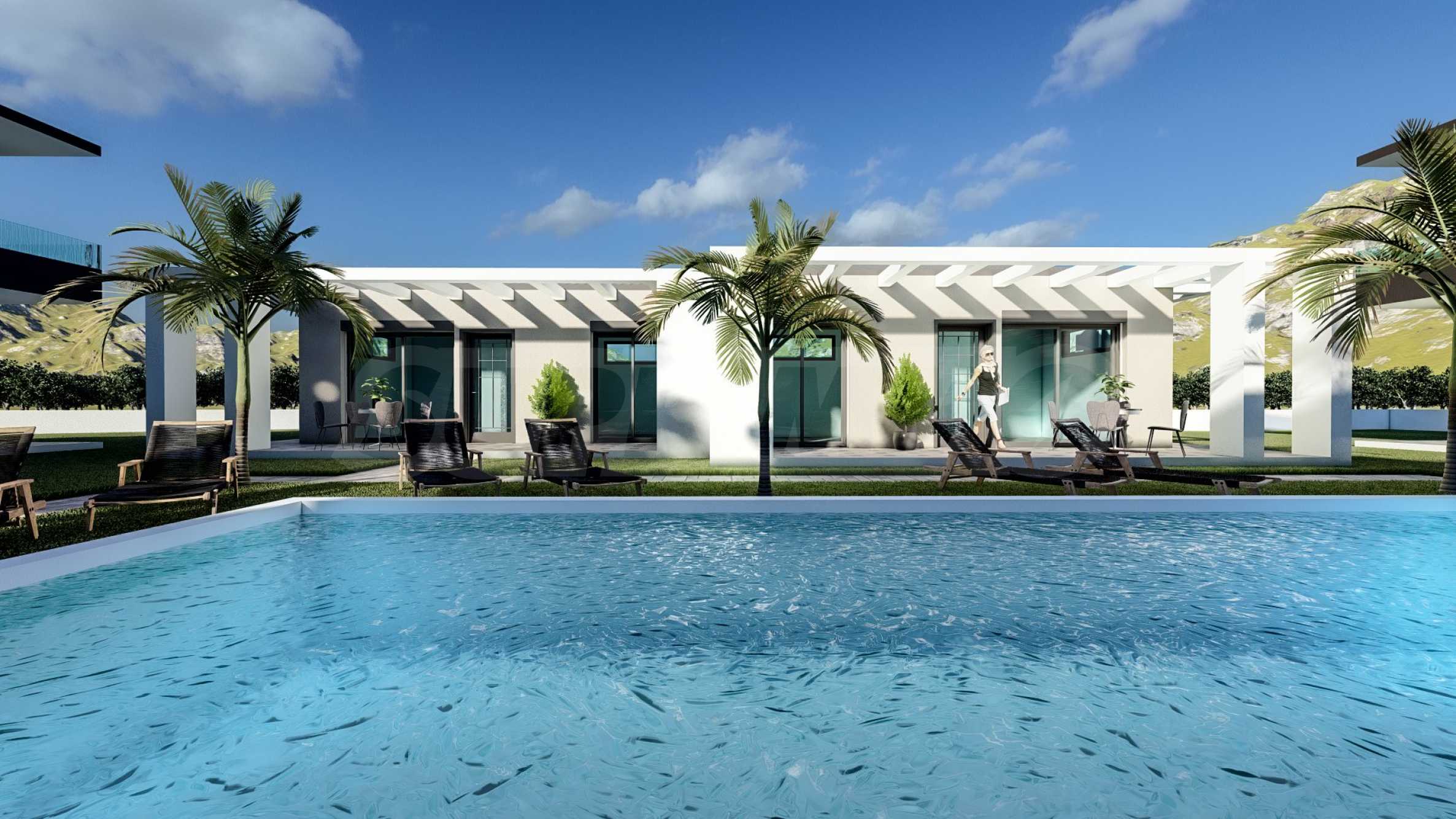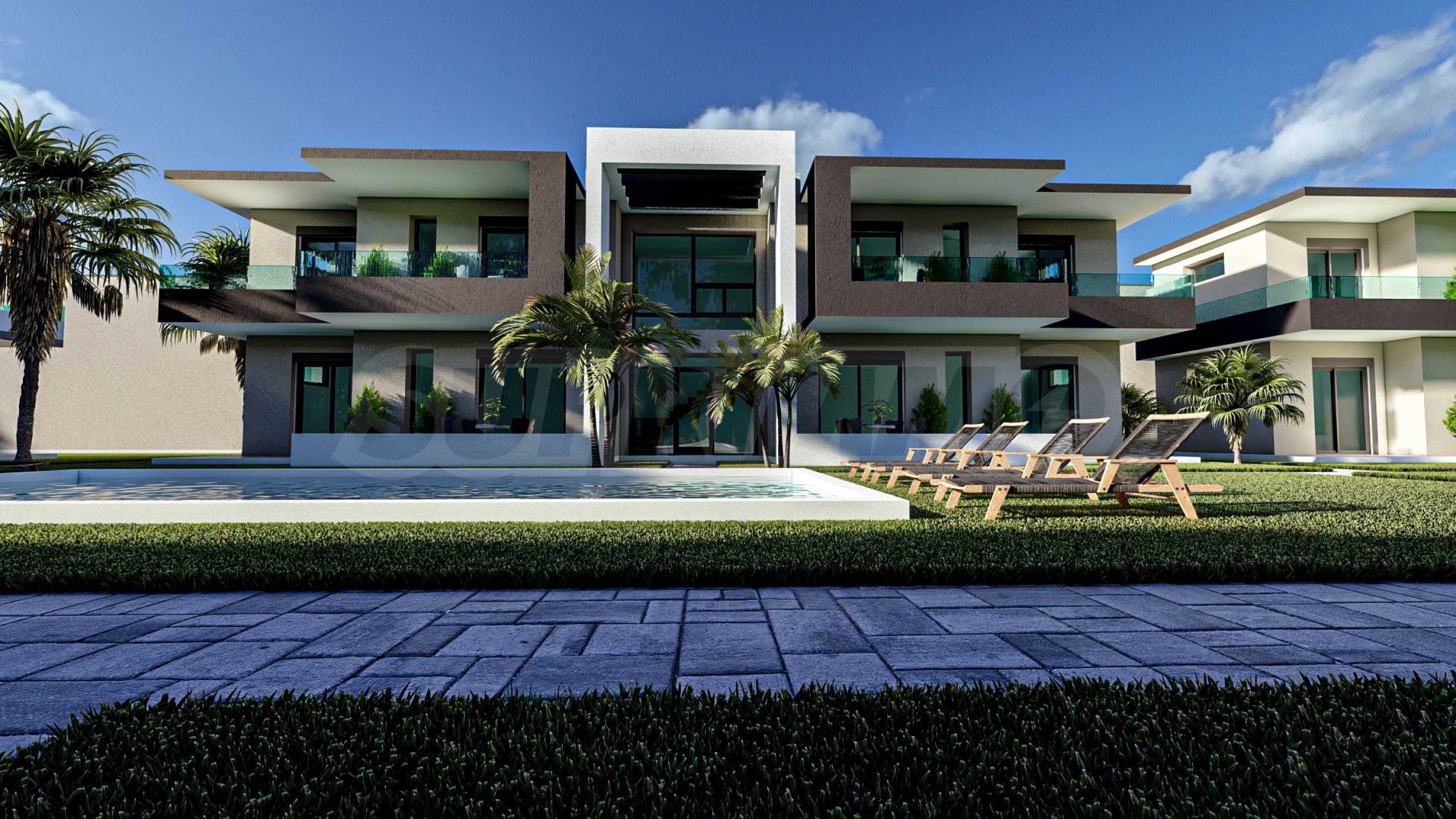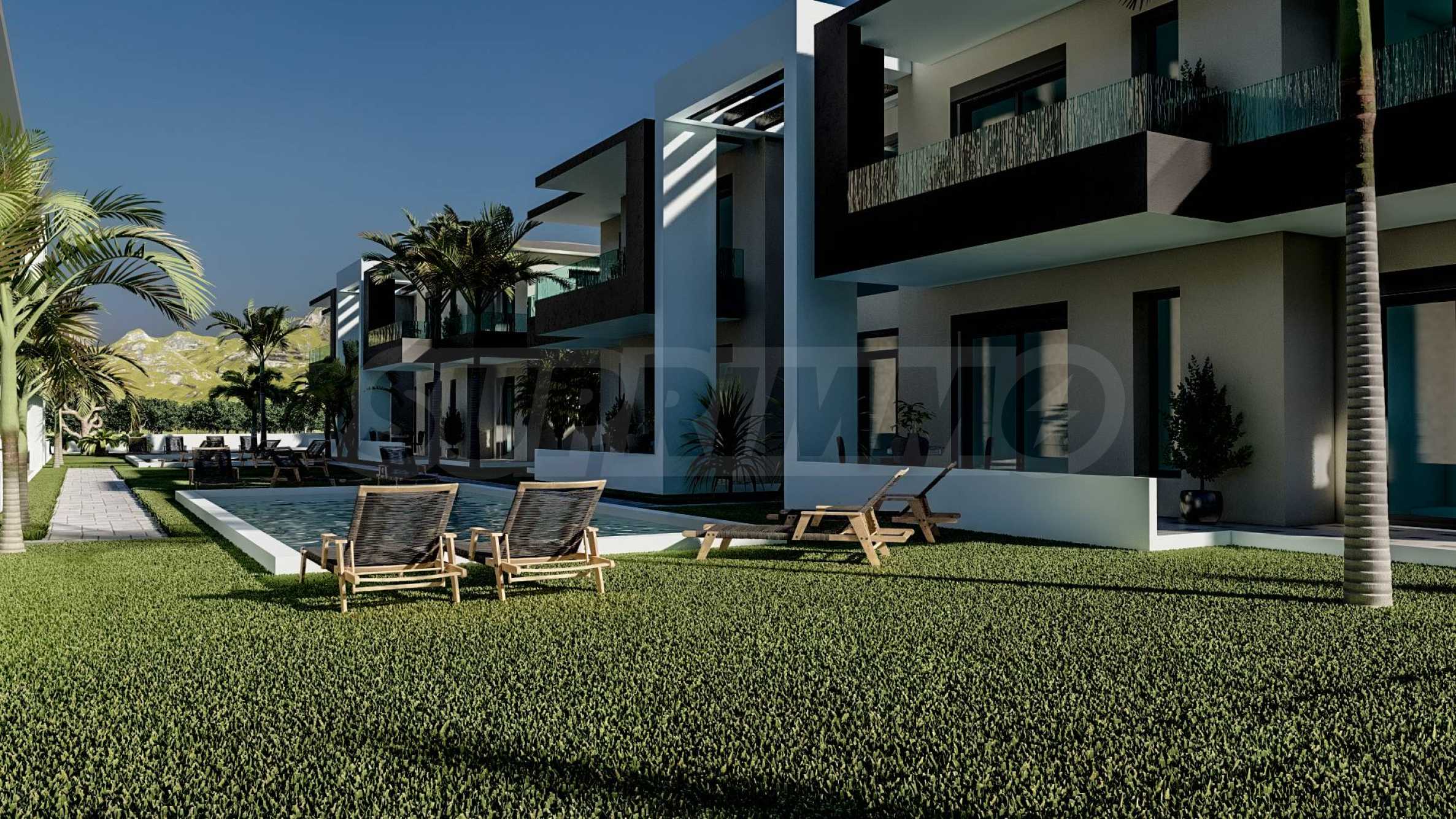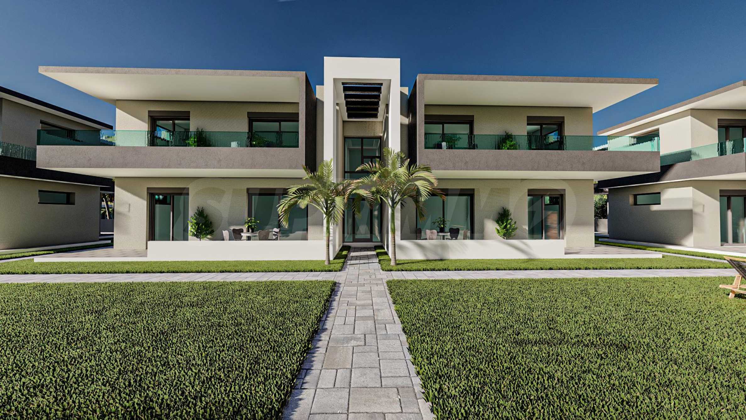 Kompleks składa się z 15 budynków i łącznie 54 apartamentów, z których każdy został zaprojektowany z myślą o komforcie i zrównoważonym rozwoju. Do ich budowy wykorzystano wysokiej jakości materiały. Elewacja budynków idealnie wpisuje się w naturalny krajobraz i architekturę okolicy, tworząc harmonijną całość. Aby zapewnić mieszkańcom poczucie bezpieczeństwa, kompleks jest ogrodzony i posiada własny parking. Na terenie osiedla znajduje się również kilka wspólnych basenów z miejscami do relaksu, idealnymi do relaksu, spotkań z przyjaciółmi i wodnych szaleństw.
