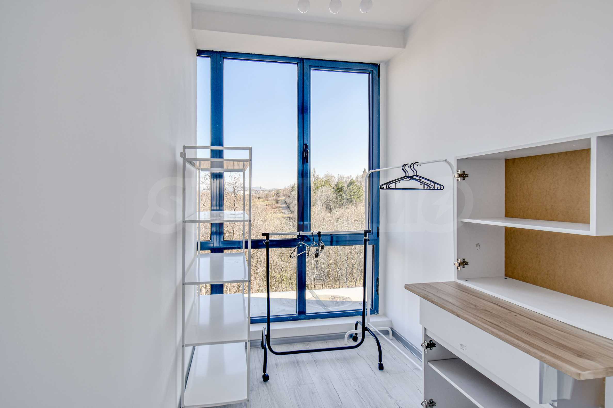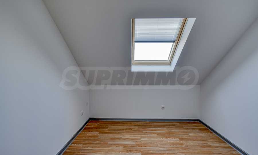 Apartament typu maisonette składa się z przestronnego salonu z kuchnią, dwóch nieumeblowanych sypialni na pierwszym piętrze, które można umeblowanie wykonać za dodatkową opłatą, a także łazienki z toaletą. Na drugim piętrze znajduje się sypialnia główna z garderobą i prywatną łazienką.