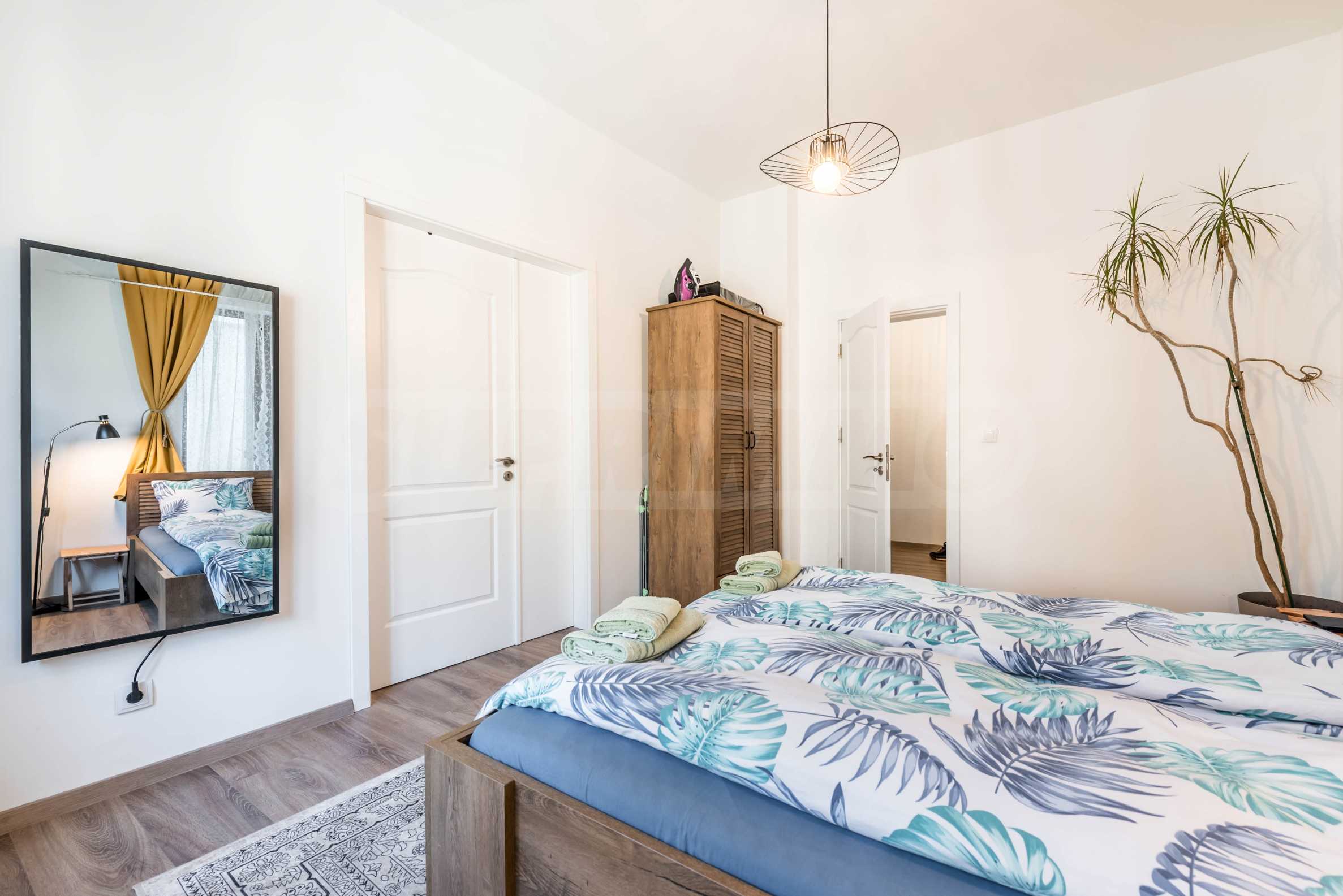 Apartament jest w pełni umeblowany i wyposażony we wszystko, czego potrzebujesz do życia, takie jak meble i sprzęt AGD. Wnętrze łączy elegancję i domowy komfort – wysokiej jakości materiały, jasne kolory i starannie dobrane detale. Ogrzewanie odbywa się za pomocą klimatyzacji w salonie i kuchni, a w sypialniach zastosowano promienniki podczerwieni.