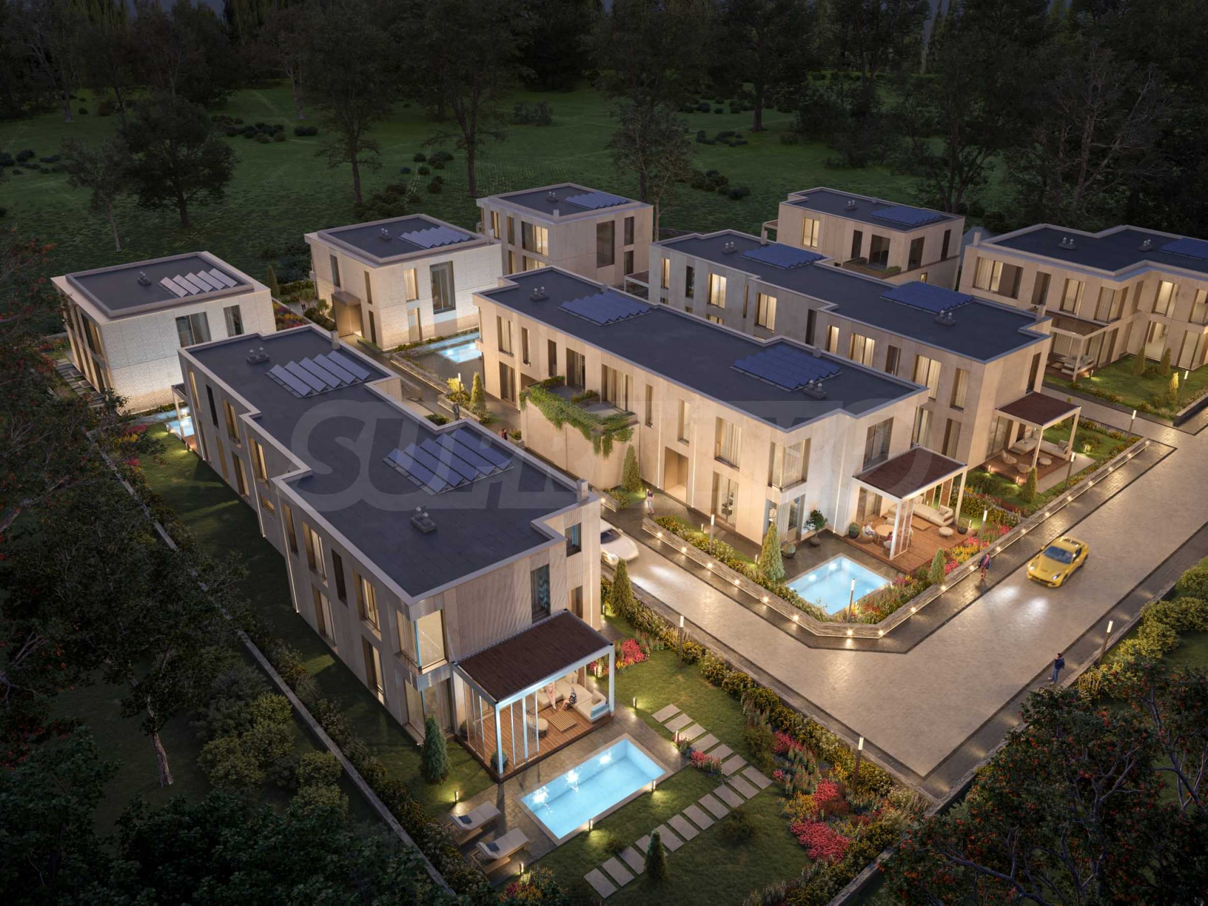 - markizy przeciwsłoneczne. - Basen dla każdego domu z systemem filtracji;