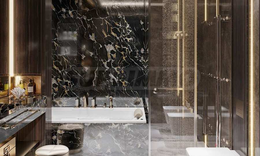 - designerskie łazienki (6,49 m kw. i 5,40 m kw.) – nowoczesne i luksusowe.