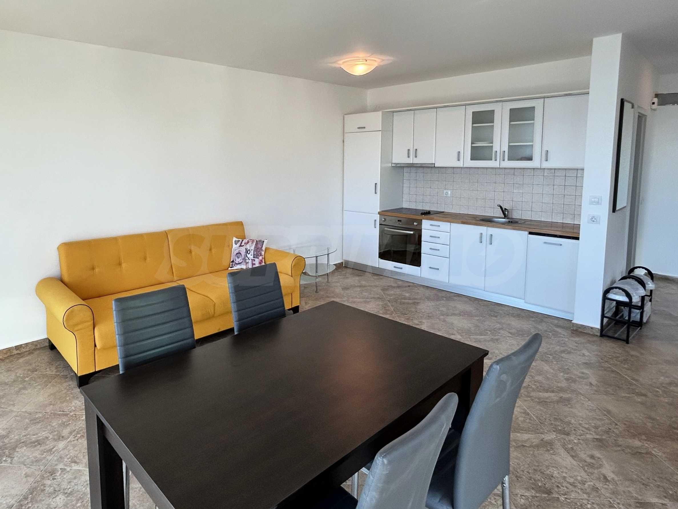 Prezentujemy jasny i przestronny apartament z jedną sypialnią, z wyjątkowym widokiem na morze i basen, położony w luksusowym, strzeżonym kompleksie na pierwszej linii brzegowej w Sozopolu.