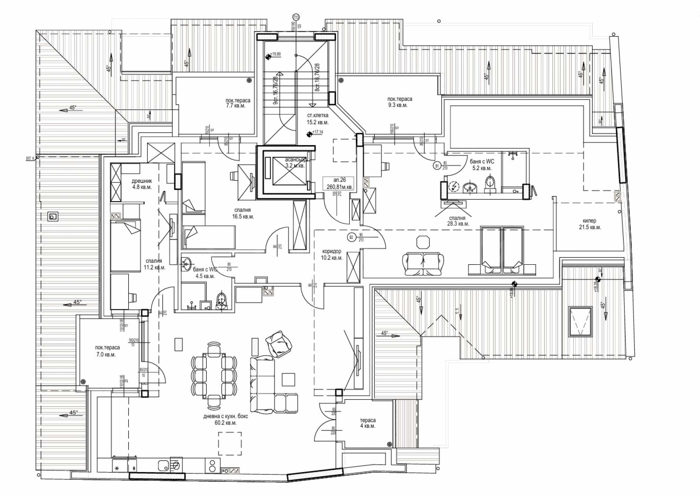 Mieszkania wydawane są w następującym stopniu wykończenia zgodnie z bułgarskimi normami budowlanymi , z tynkiem i jastrychem: