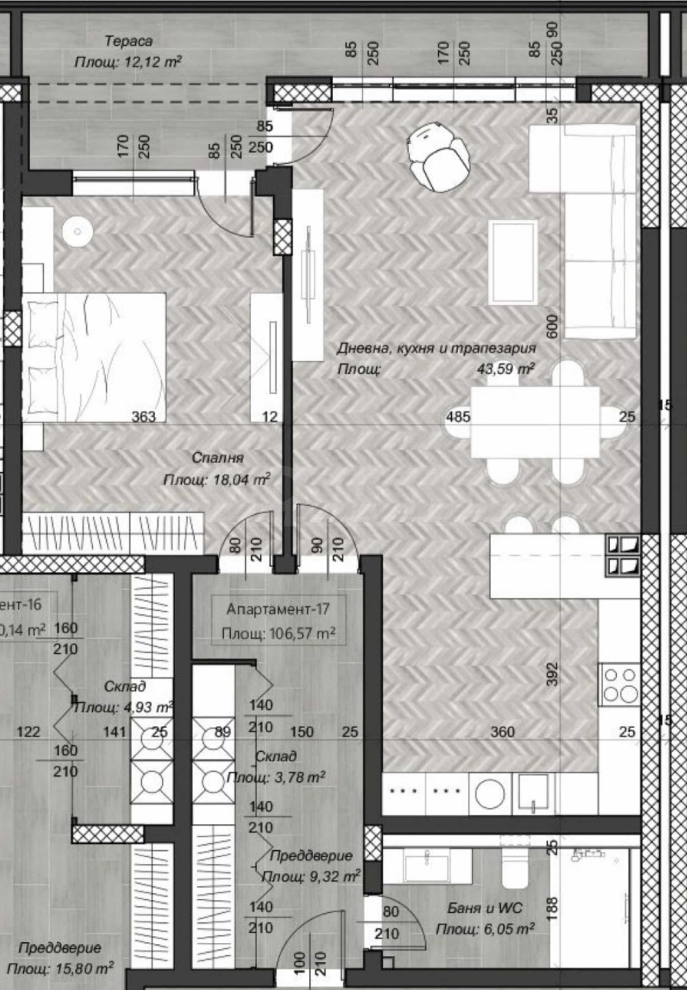 Mieszkanie jest oddawane w stanie wykończonym zgodnie z bułgarskimi normami budowlanymi, z tynkiem i wylewką. Dostępna jest opcja wykończenia pod klucz.