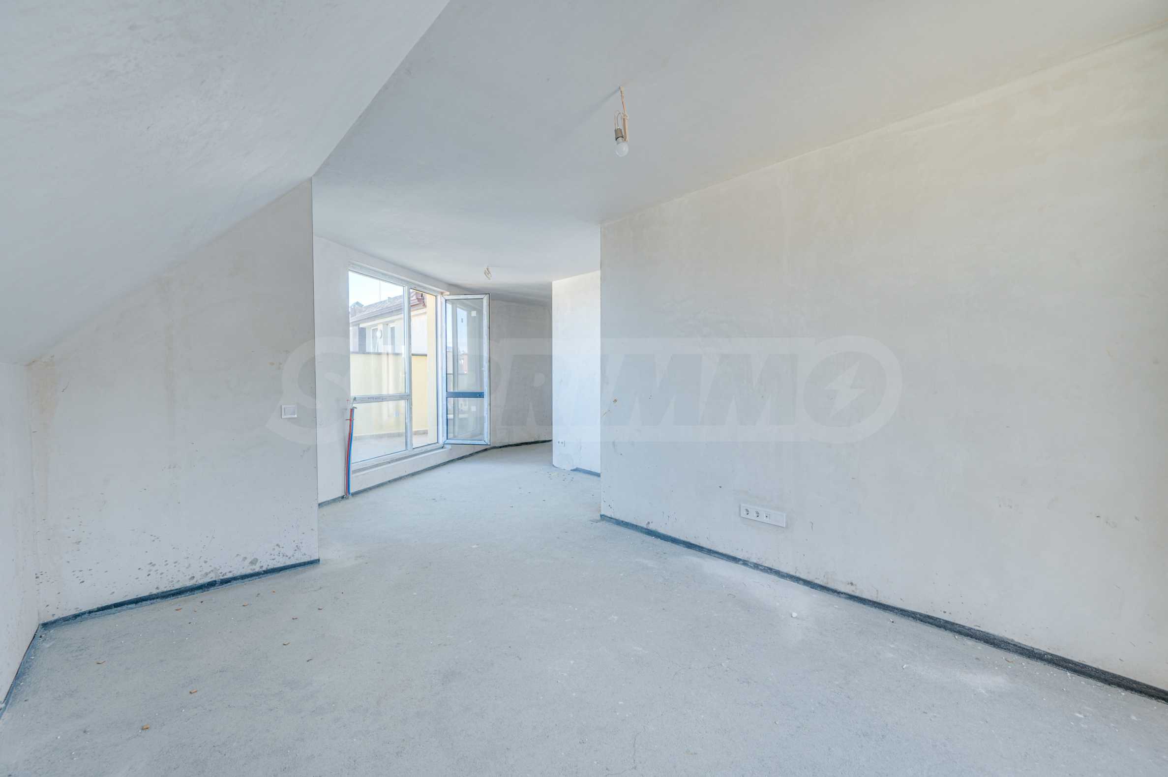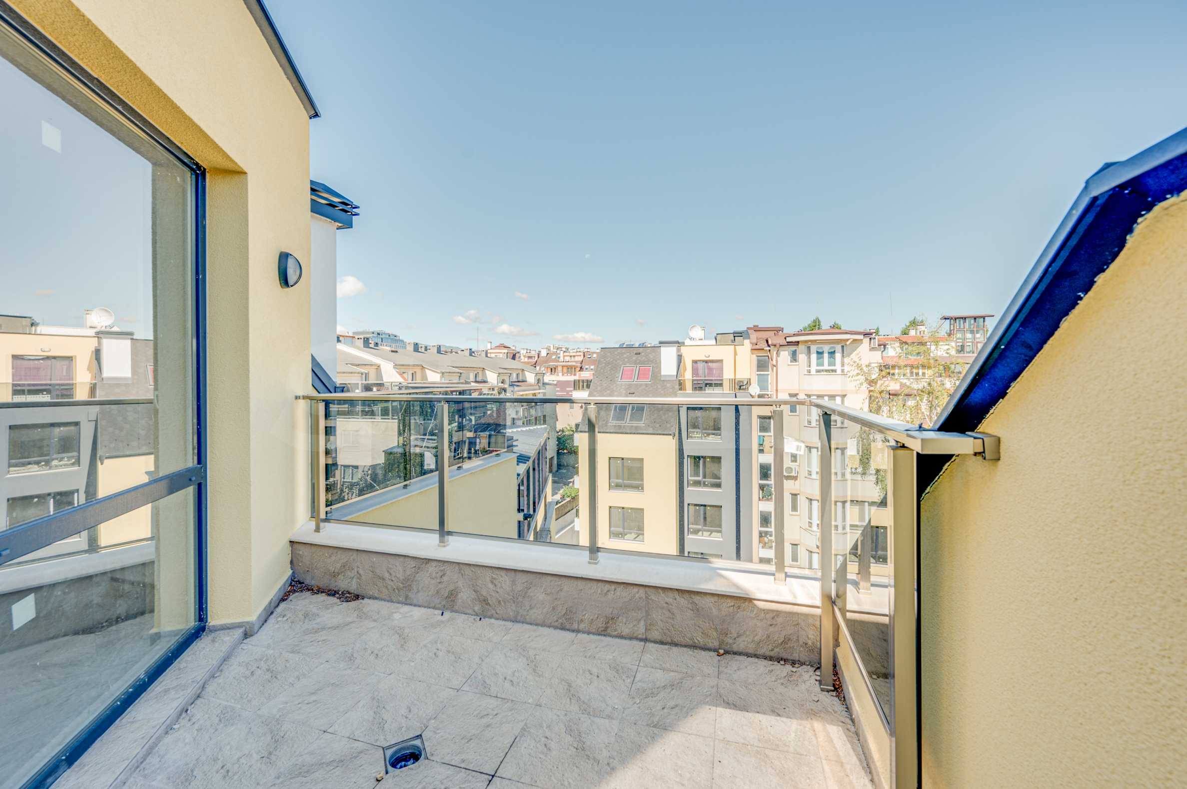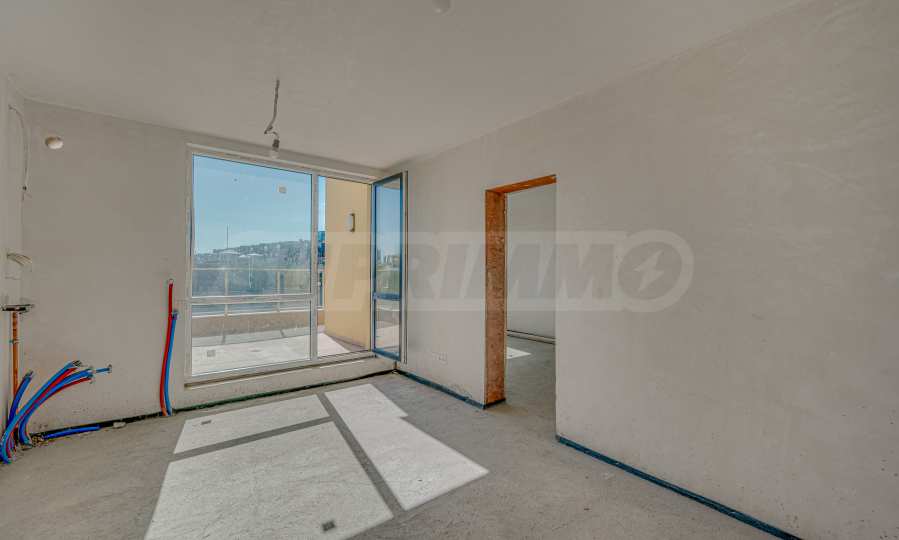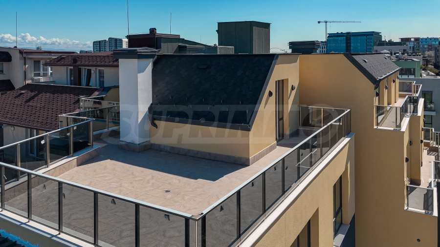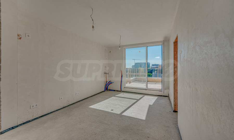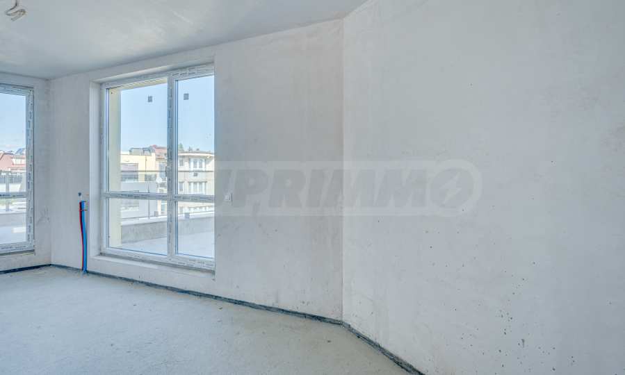 Apartament o powierzchni całkowitej 146,93 m² znajduje się na piątym, ostatnim piętrze. Jest wynajmowany zgodnie z bułgarskim kodeksem budowlanym – na gładzi i jastrychu, gotowy do wykończenia według gustu przyszłych właścicieli. To nieruchomość, w której przestrzeń, światło i widoki z zewnątrz stają się częścią codziennego życia. Duże tarasy dają możliwość stworzenia przytulnych stref relaksu pod gołym niebem – miejsca na poranną kawę, wspólne wieczory z bliskimi lub po prostu na chwile ciszy z widokiem na góry.