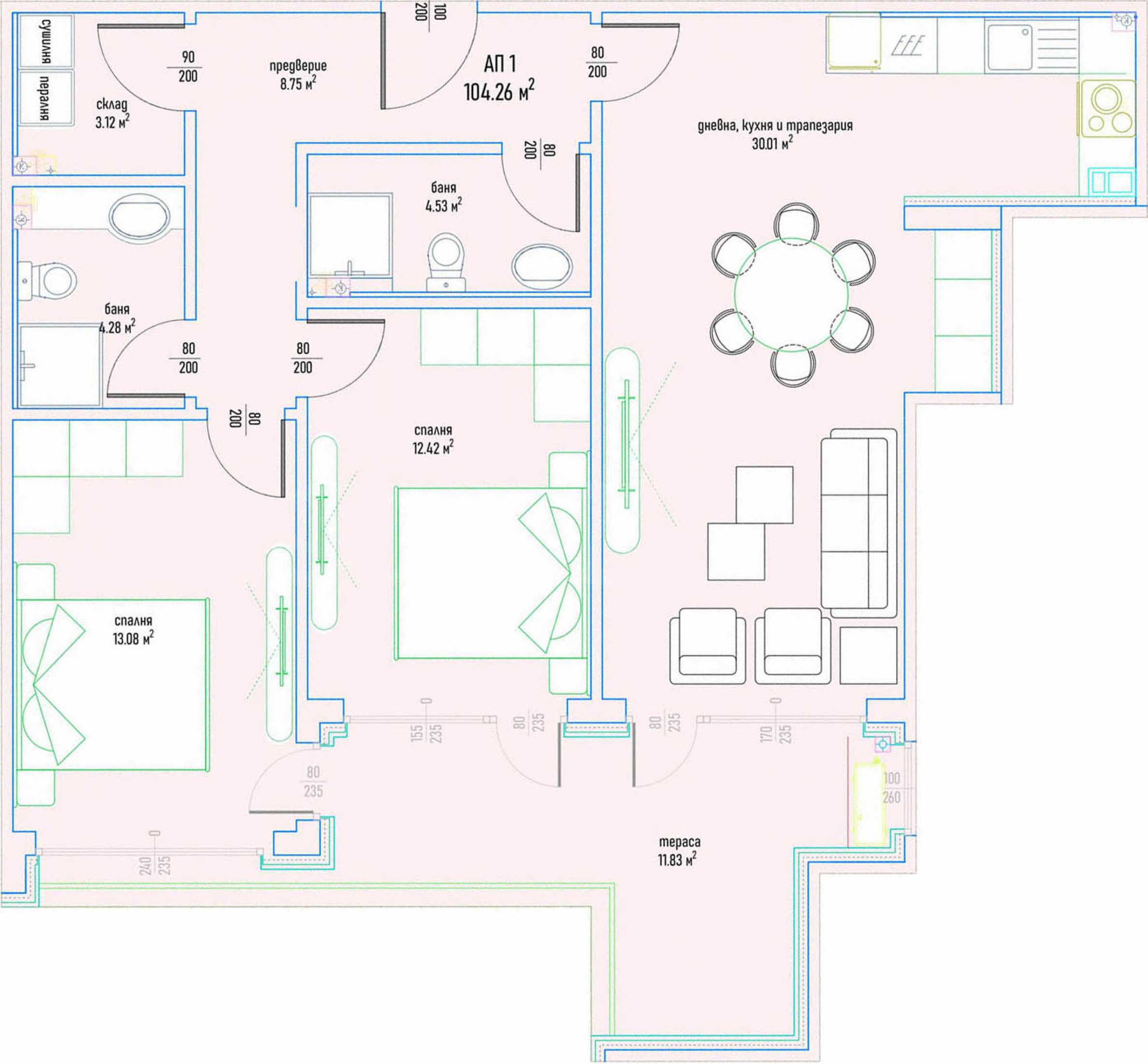 Prezentujemy mieszkanie trzypokojowe w nowym kompleksie mieszkaniowym, położonym w sercu 10 akrów zielonych terenów w mieście... Sofia, w dzielnicy "Dolina Malin". Kompleks ten jest jedyny w swoim rodzaju w całej Sofii, zachwyca malowniczą i zapierającą dech w piersiach panoramą Gór Witosza. Okolica jest cicha i spokojna, a powietrze czyste. Lokalizacja obiektu zapewnia wyjątkowo łatwy dostęp do obwodnicy, przystanków komunikacji miejskiej, parku Vartopo, American College, Narodowej Akademii Sportu im. Vasila Levskiego, centrum handlowego RING Mall i wszystkich części miasta.