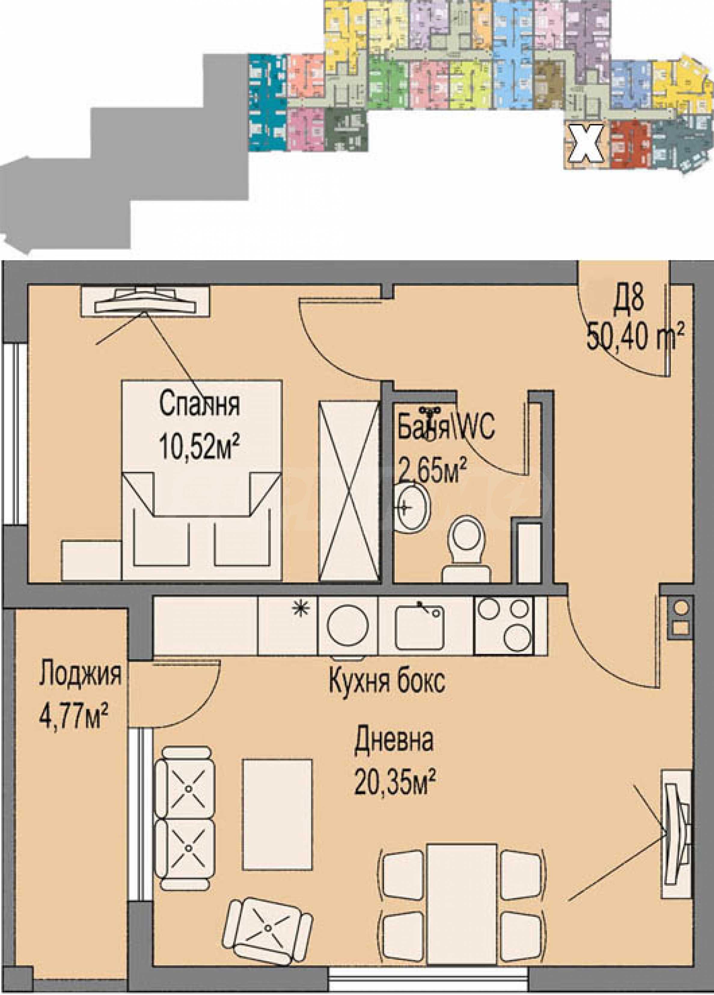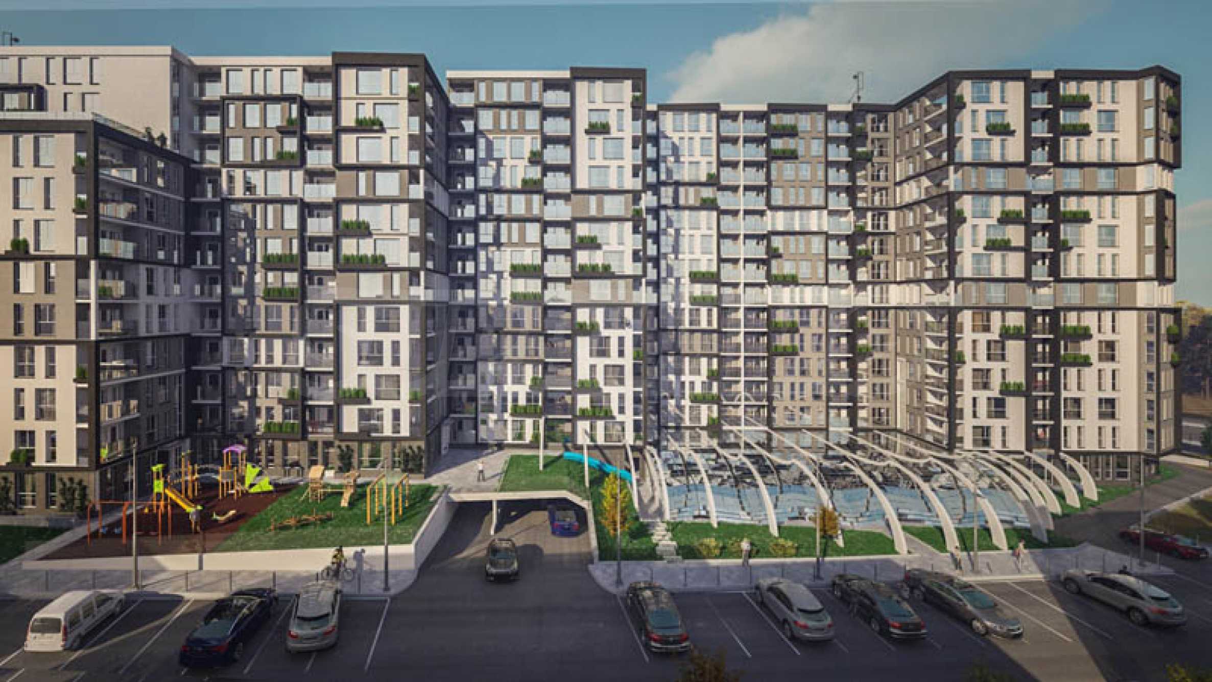 Oferujemy do sprzedaży panoramiczne mieszkanie dwupokojowe na 12. piętrze, w trakcie budowy w dużym kompleksie na terenie dzielnicy. „Strefa A kopalni miedzi” w Burgas.