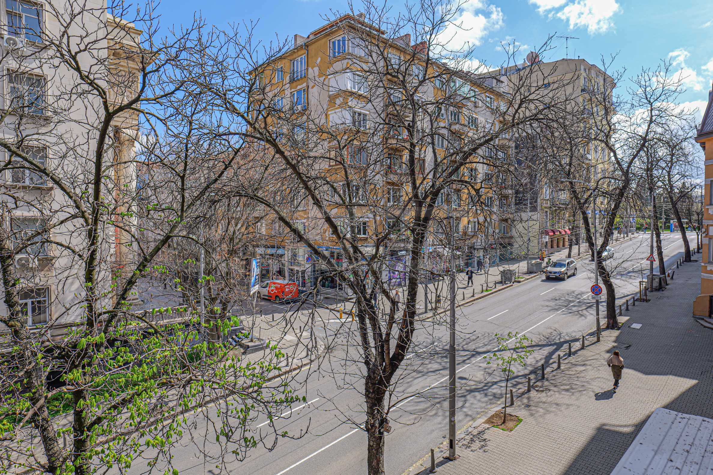 Apartament znajduje się na drugim piętrze na poziomie gruntu spośród pięciu w odnowionym budynku z windą i zadbanymi częściami wspólnymi. Ekspozycja skierowana jest na wschód, z widokiem na Operę Narodową i ulicę „Vrabcha”.