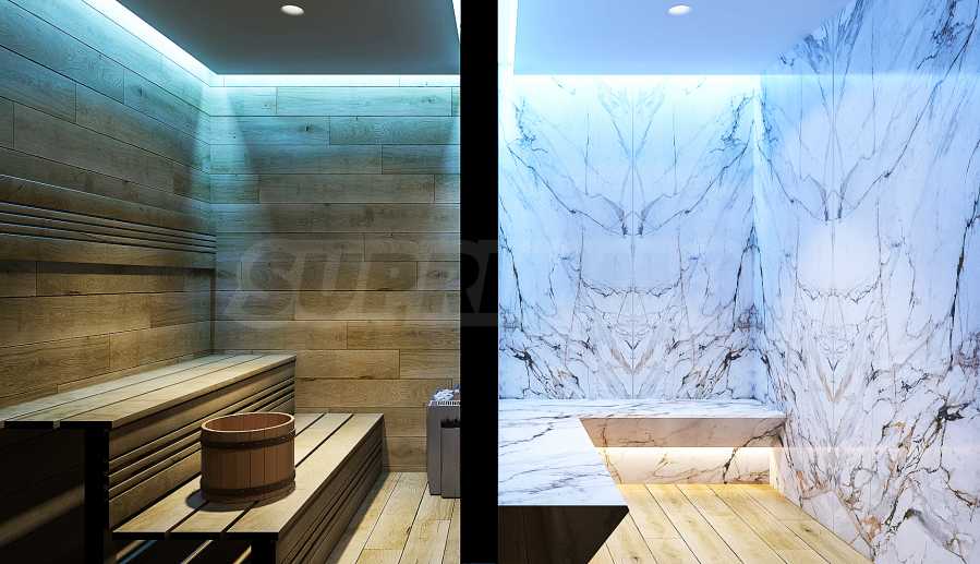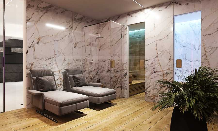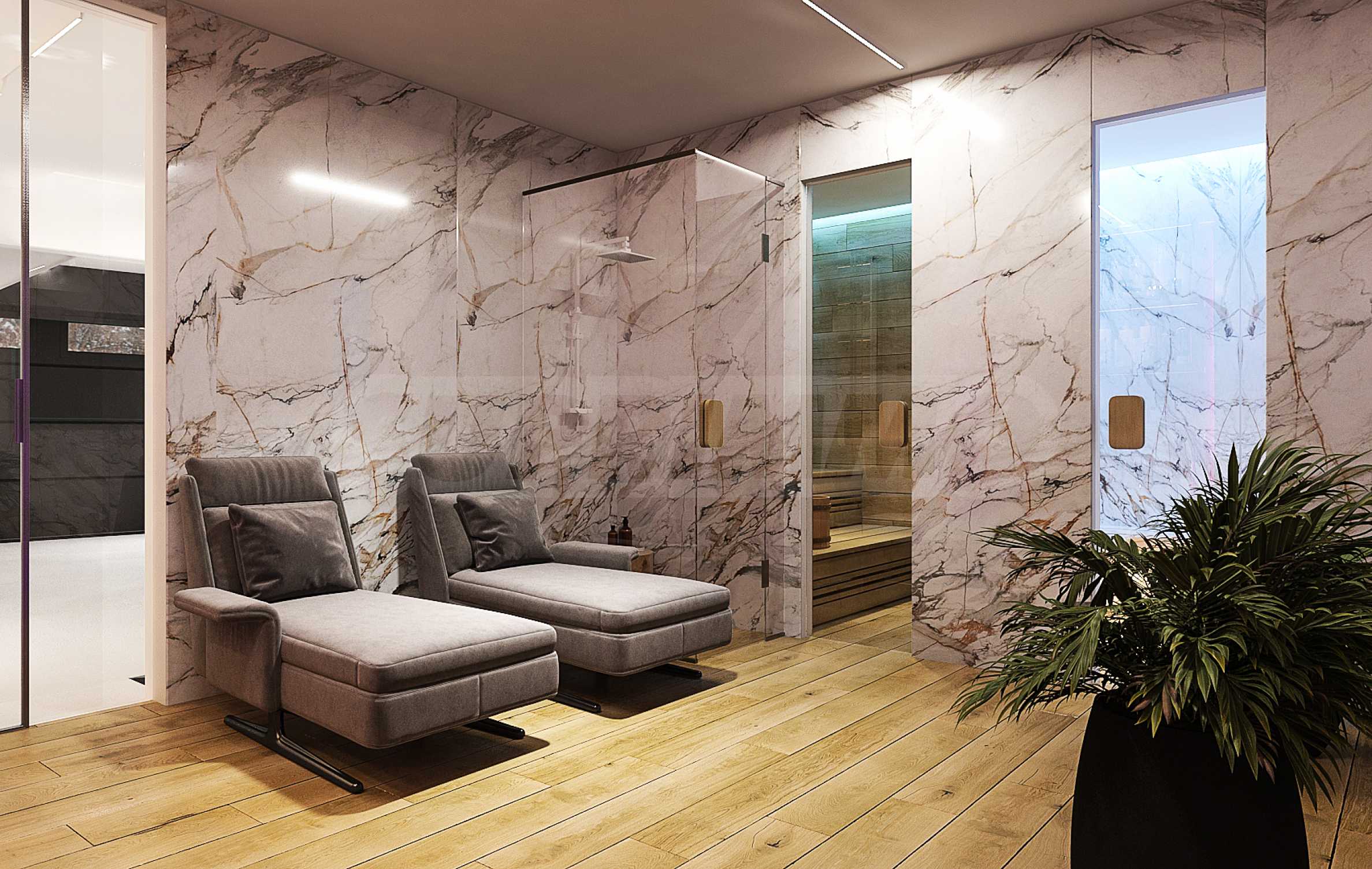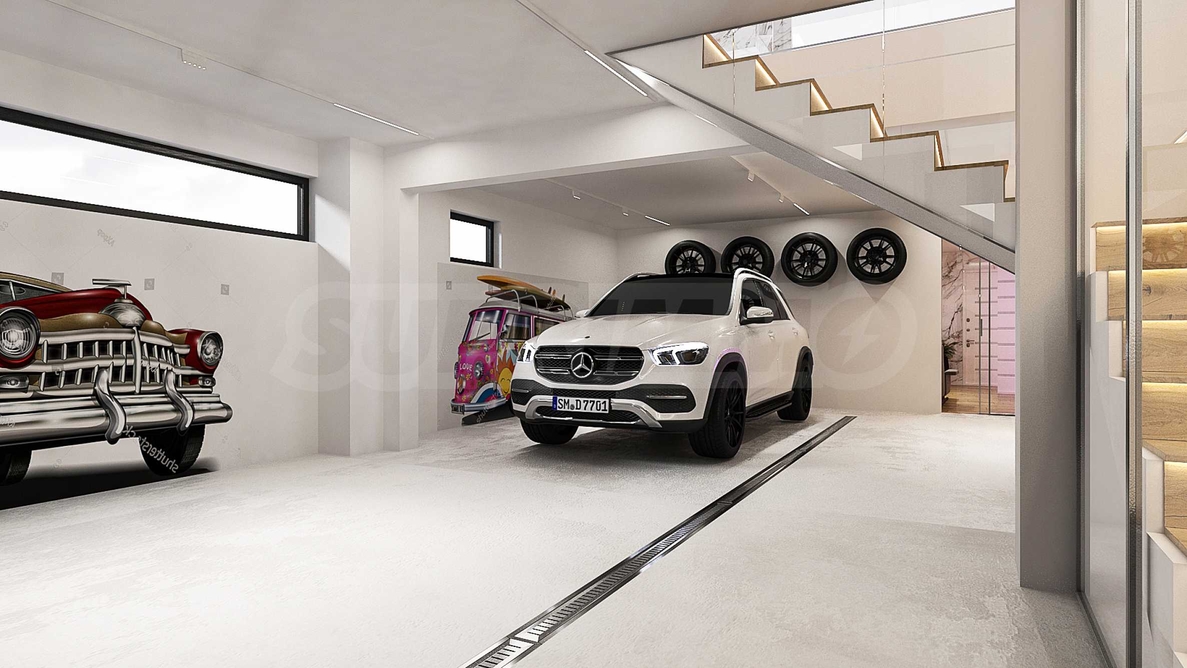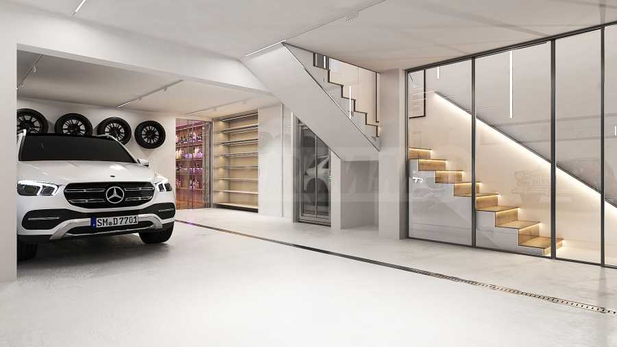 • parter: garaż na 4 samochody, strefa SPA z sauną, łaźnią parową, prysznicem i strefą relaksu;