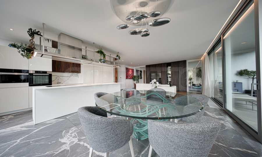 Mieszkanie ma powierzchnię 368 m² i znajduje się na drugim piętrze, ale sprawia wrażenie czwartego. Budynek został wybudowany w 2020 roku, a apartament oddano do użytku w 2023 roku.