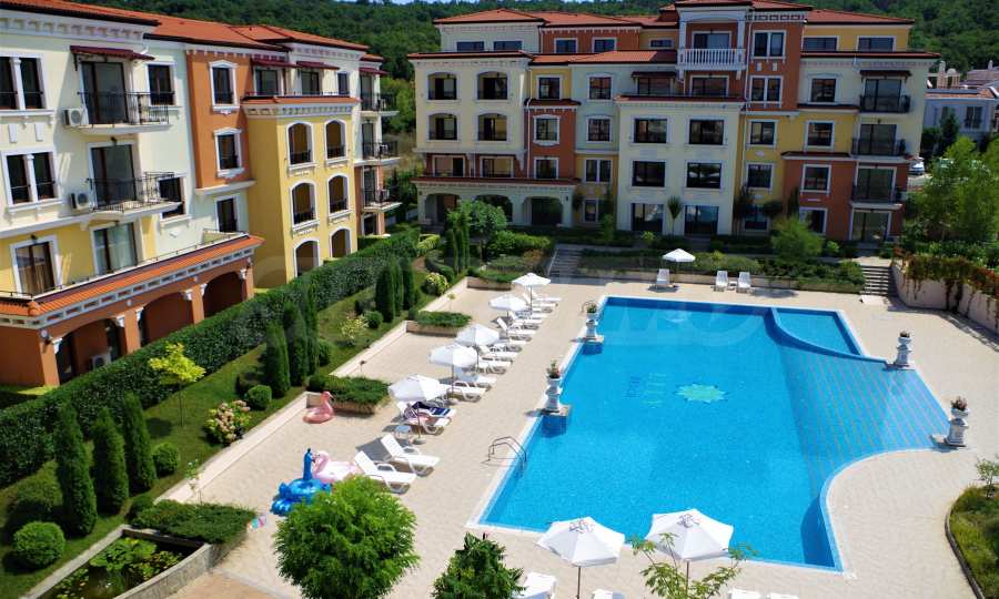 Oferujemy na sprzedaż dwupokojowe mieszkanie, w eleganckim kompleksie w stylu włoskim, zaledwie 150 metrów od plaży Kavatsi (zatoka Veselie), 3 km od miasta Sozopol.