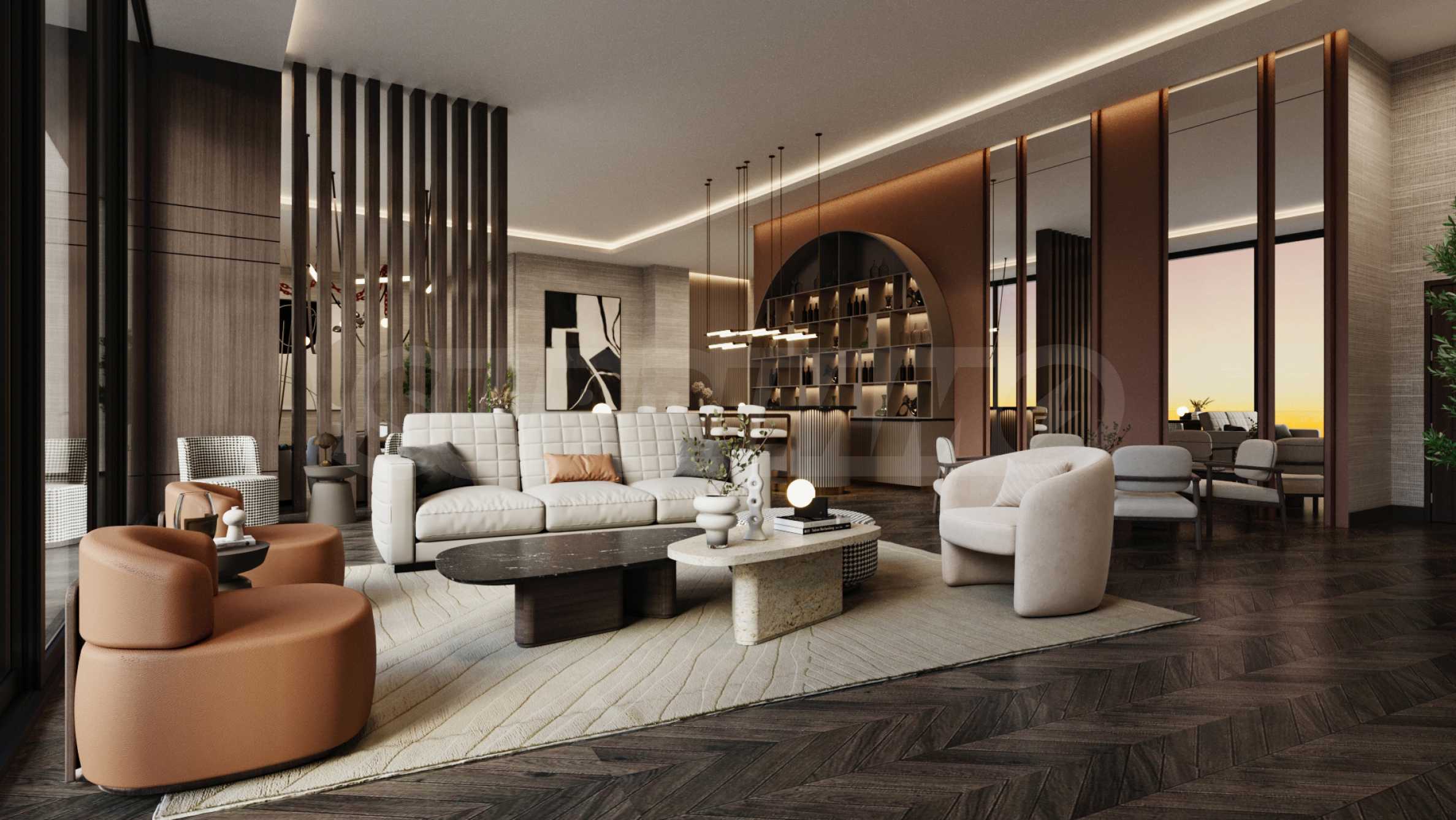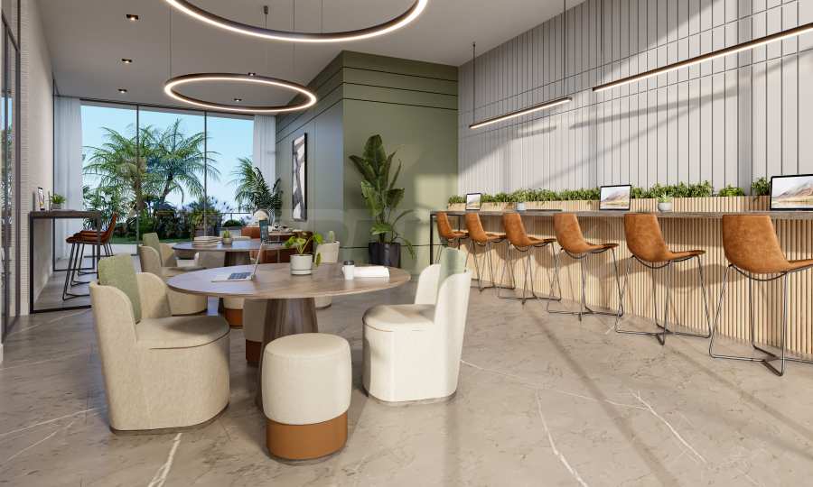 Apartamenty mają wysokie sufity, okna sięgające od podłogi do sufitu i przestronne tarasy, co daje wrażenie światła, powietrza i nieskończonej perspektywy. Koncepcja „żyj-pracuj-baw się” przekształca budynek w kompletne środowisko do życia, oferujące wszystko, czego potrzebujesz – od produktywnej atmosfery pracy po możliwości wartościowego relaksu i spotkań towarzyskich, bez konieczności opuszczania domowego zacisza.