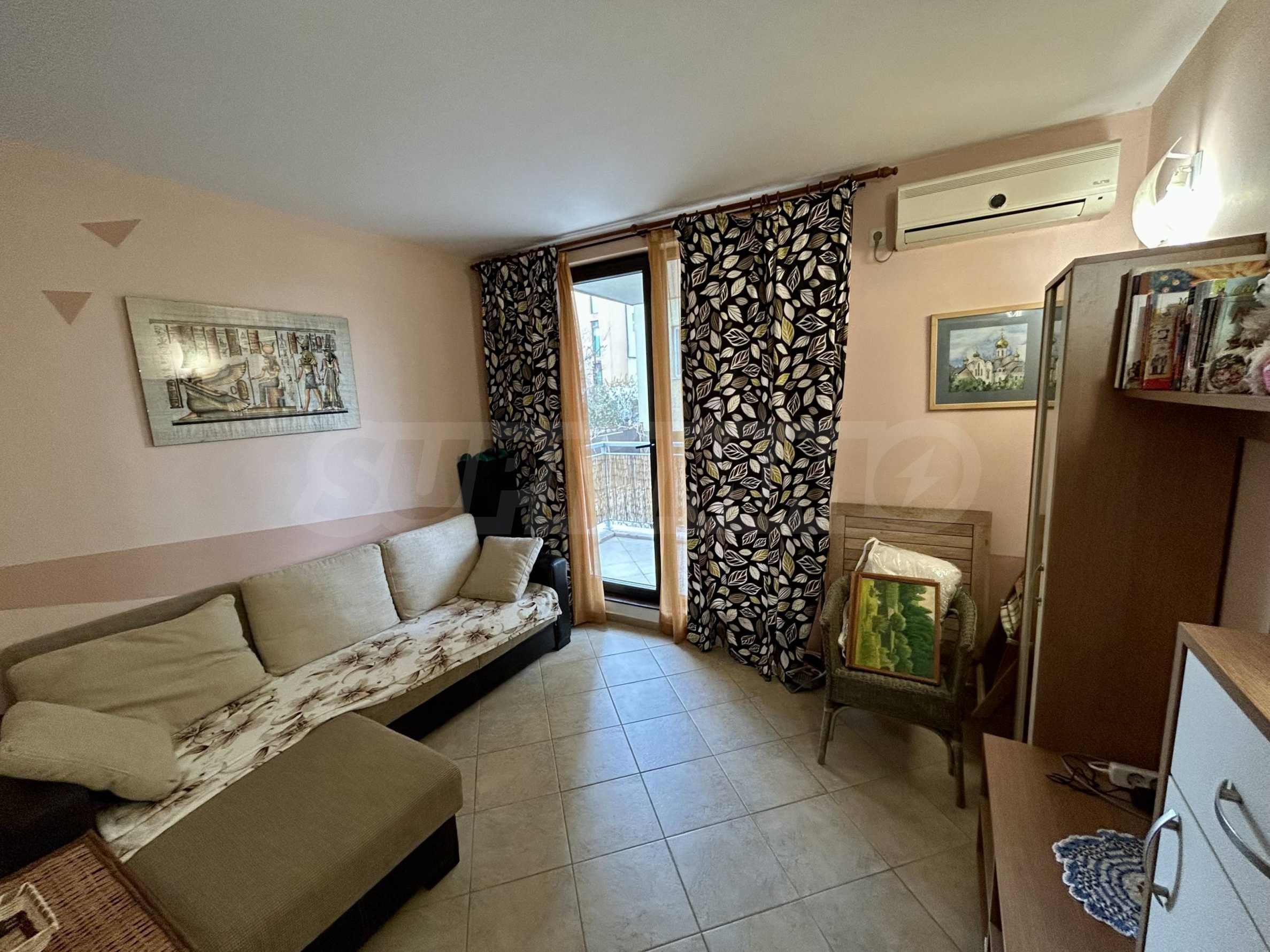 Oferujemy na sprzedaż kompaktowe mieszkanie z jedną sypialnią w budynku mieszkalnym bez opłat za utrzymanie, 100 metrów od Centralnej Plaży w mieście Sozopol.