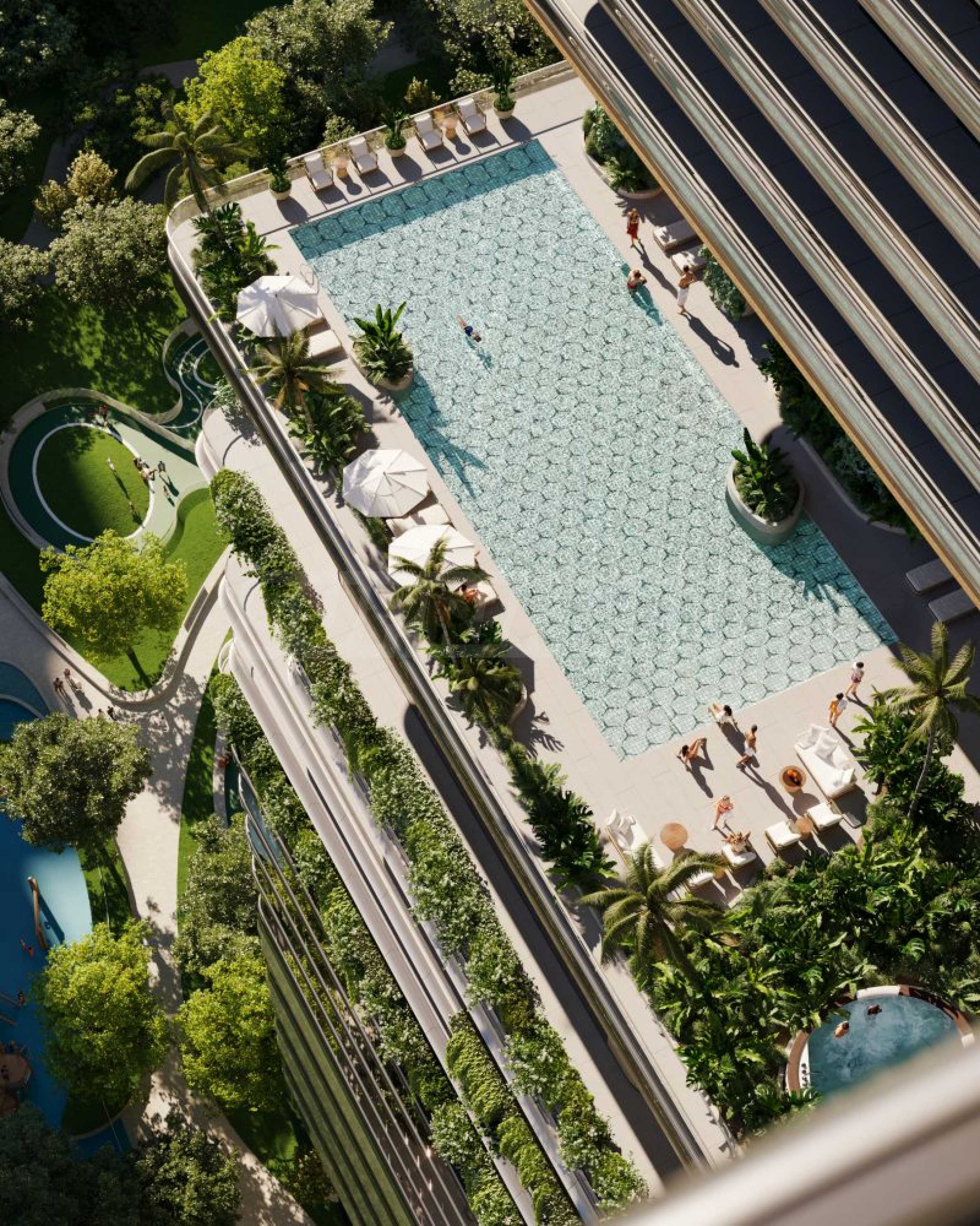 Projekt łączy luksusowe rezydencje, powierzchnie biurowe, strefy wellness i zielony park, tworząc harmonijne i eleganckie środowisko do życia i pracy w sercu Miami.