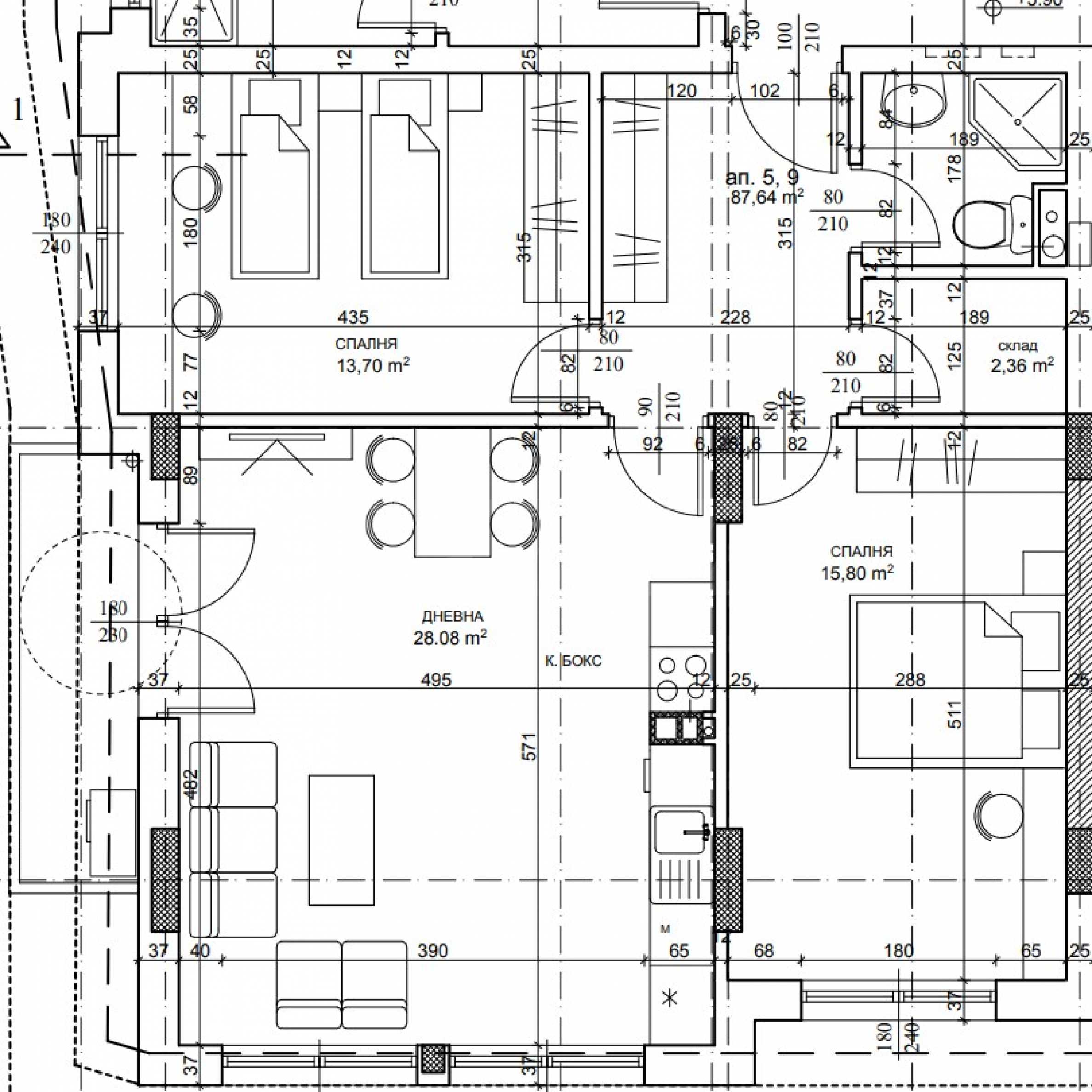 • dwie sypialnie;