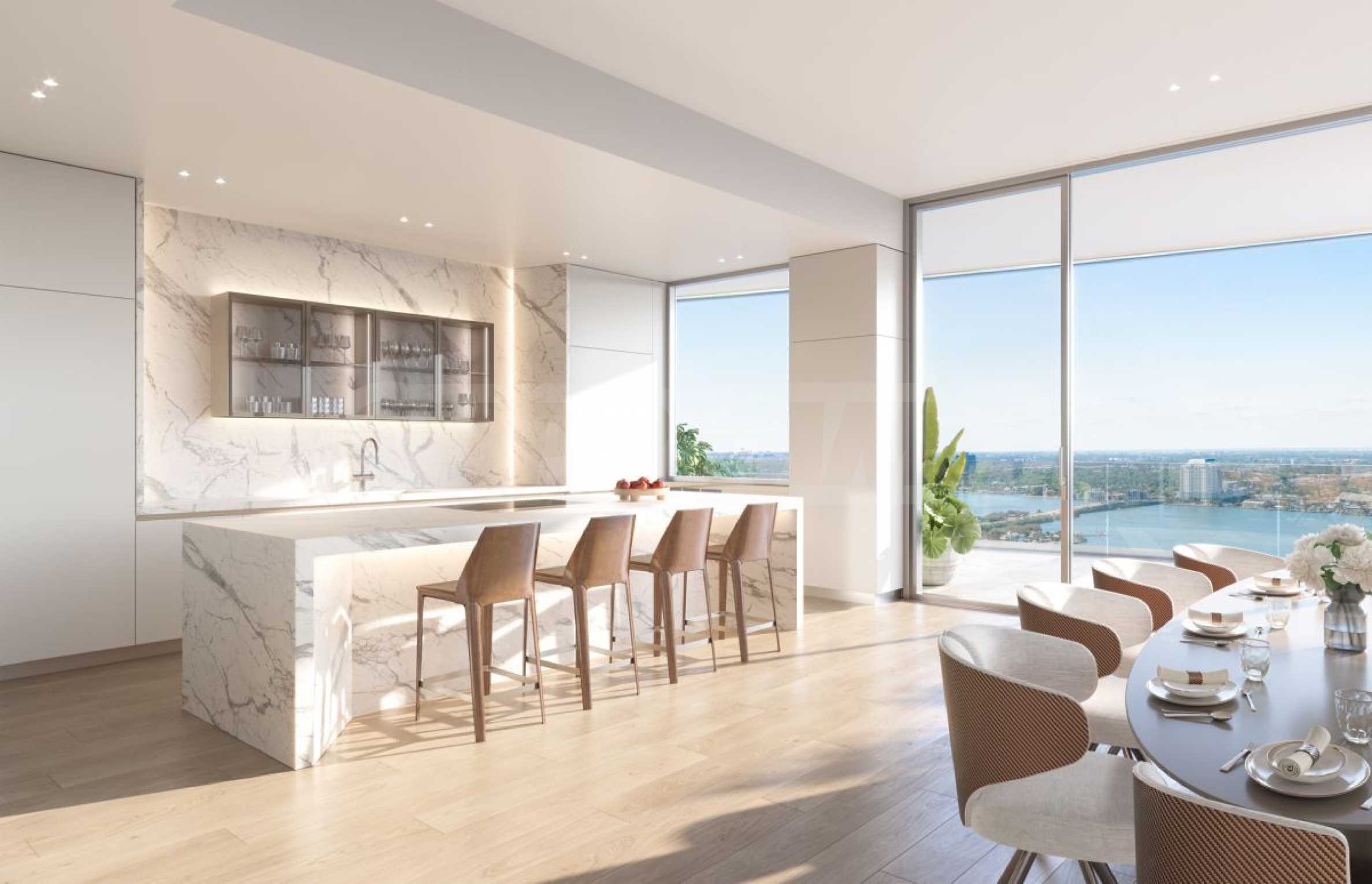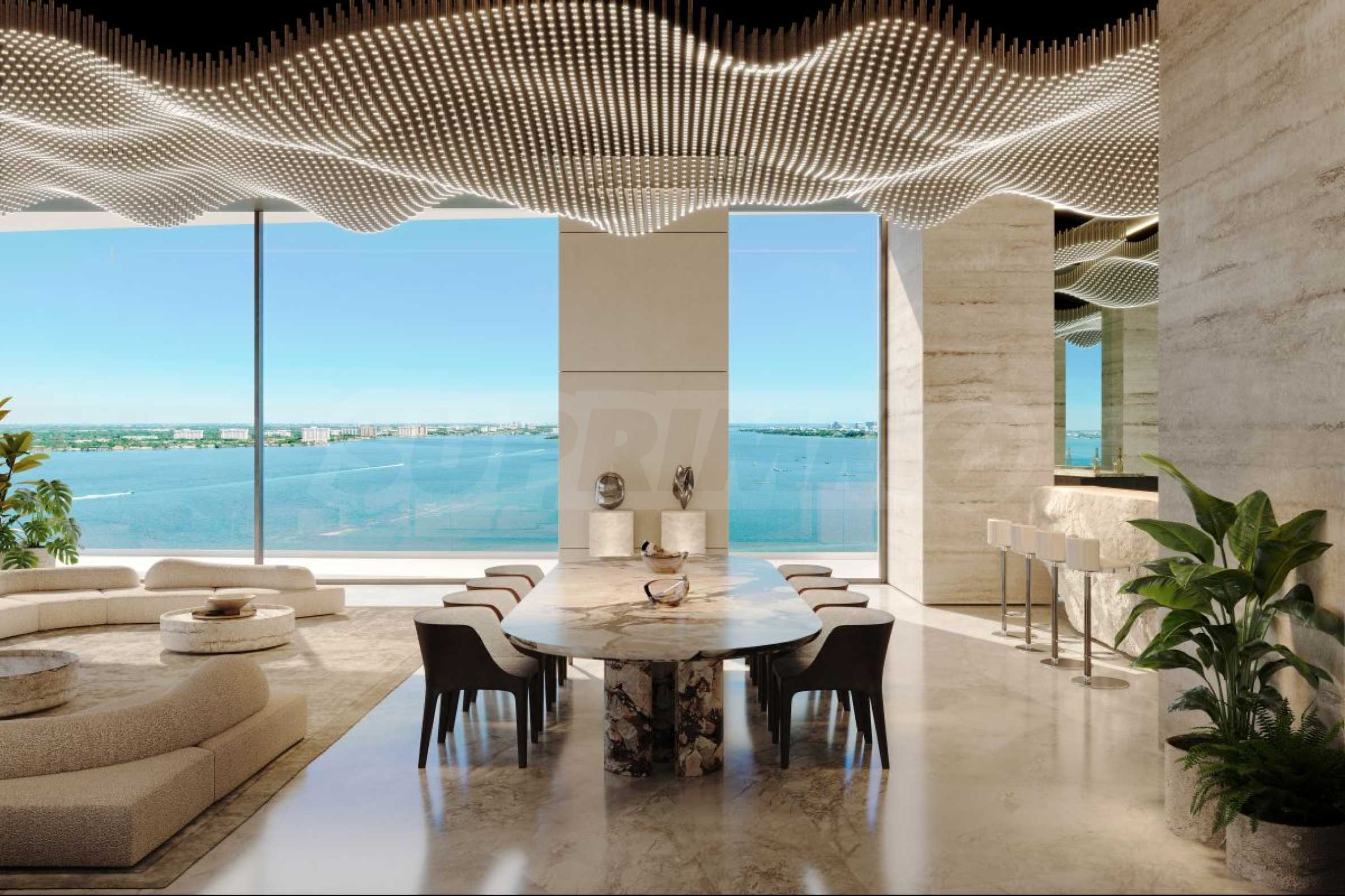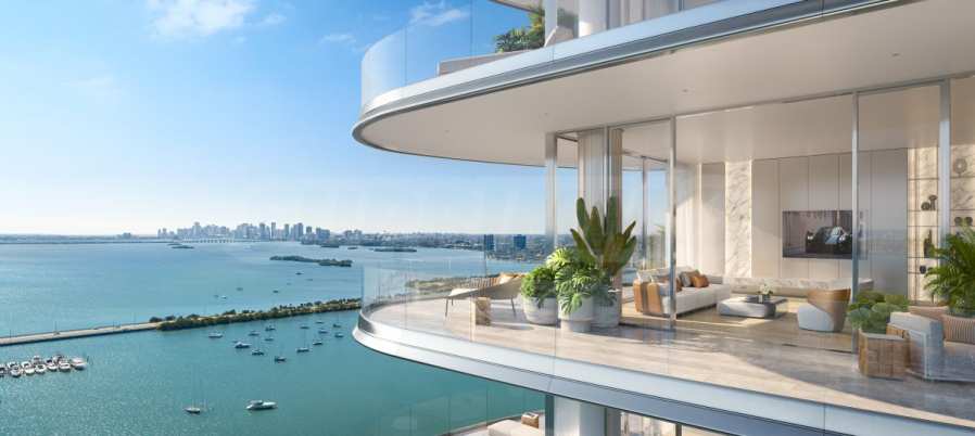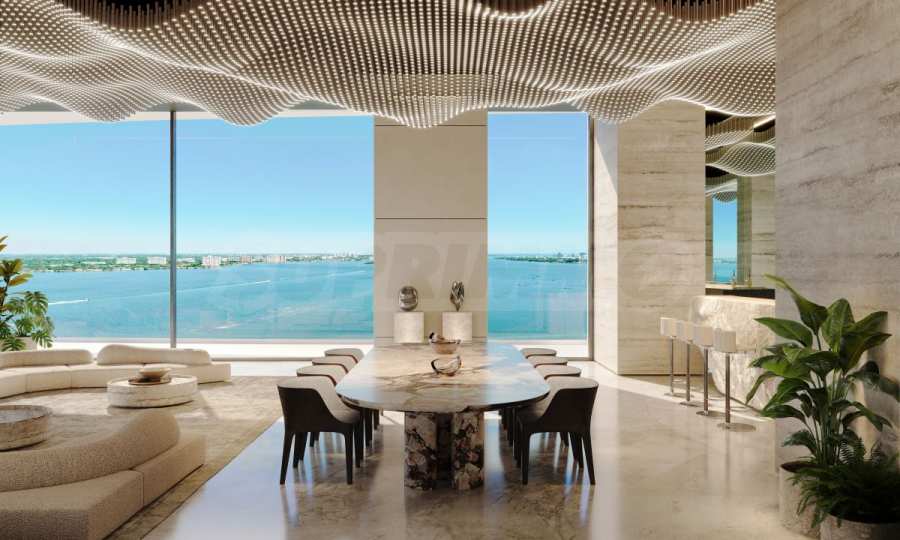 Jedną z najbardziej godnych uwagi atrakcji architektonicznych jest ekskluzywny układ – tylko cztery apartamenty na piętrze, co gwarantuje spokój, prywatność i niepowtarzalny panoramiczny widok z dwóch różnych stron zatoki. Każdy apartament posiada przestronne tarasy o powierzchni od 74 do 96 m2, które w połączeniu z oknami sięgającymi od podłogi do sufitu zamieniają dom w oazę, w której komfort spotyka się ze słońcem i morską bryzą Miami.