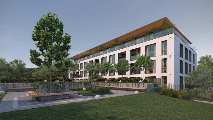 Architekci i deweloper po raz kolejny postawili na nowoczesny projekt osiedla mieszkaniowego, który postawił na minimalistyczny styl, czyste linie i harmonijną interakcję architektury z otoczeniem. Kompozycja łączy funkcjonalność z estetyką, oferując otwarte przestrzenie, obfite naturalne oświetlenie i nowoczesne materiały. Budynek ma prostokątny kształt i wyraźnie zdefiniowaną modułową konstrukcję, co nadaje mu poczucie porządku i rytmu. Układ fasady i okien tworzy zrównoważoną wizję, zapewniając jednocześnie optymalne oświetlenie i widok na okolicę i malowniczą górę.