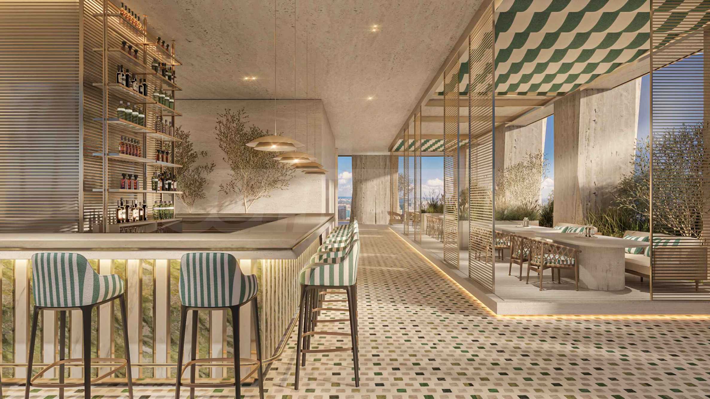 Projekt łączy w sobie luksusowe rezydencje i część hotelową, a jedną z głównych zalet jest możliwość krótkoterminowego wynajmu, co zapewnia właścicielom elastyczność. Wnętrza charakteryzują się wysokimi sufitami, panoramicznymi oknami sięgającymi od podłogi do sufitu oraz poczuciem lekkości i jasności. Najbardziej spektakularną przestrzenią pozostaje wysokie na 6 metrów lobby, które podkreśla poczucie wielkości.