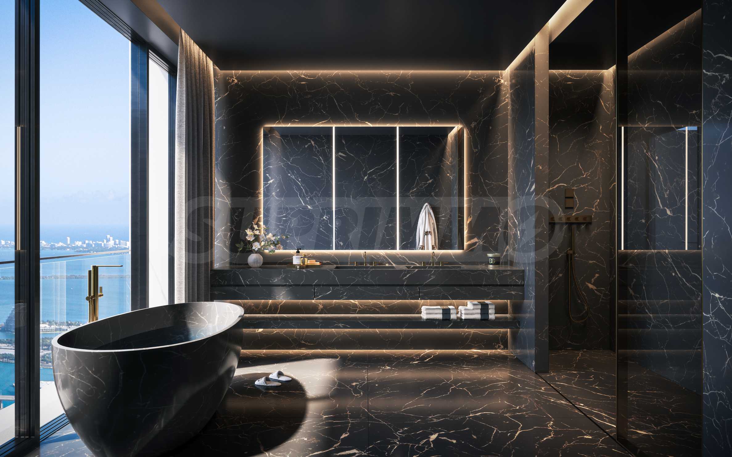 Sufity w całym budynku są wysokie, co potęguje wrażenie przestronności i szerokości, jednak największe wrażenie robi lobby, które wita gości sufitem o wysokości 6 metrów. Okna sięgające od podłogi do sufitu nie tylko powiększają pomieszczenia, ale także stanowią naturalną ramę dla niesamowitych widoków. Zwłaszcza wieczorem, po zachodzie słońca, Zatoka Biscayne i Ocean Atlantycki wyglądają jak namalowane. Niektóre apartamenty oferują widok na centrum miasta, gdzie wieżowce tworzą wspaniałą panoramę miasta.