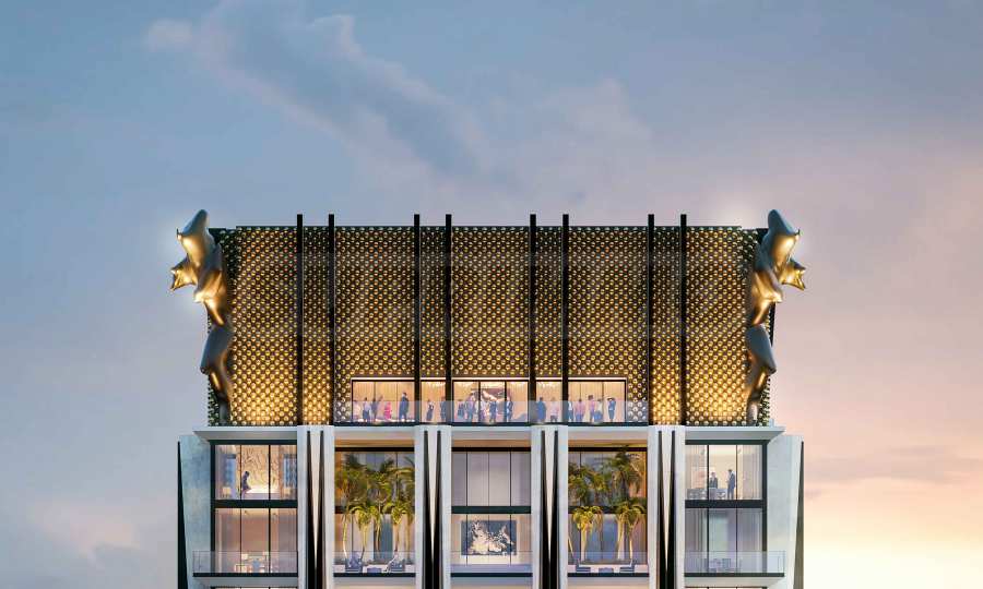 Fasada wieży odzwierciedla niepowtarzalny styl Dolce & Gabbana - okładzina z trawertynu w kolorze kości słoniowej uzupełniona jest eleganckim, lustrzanym czarnym szkłem. A dach można uznać za dzieło sztuki ze złota i połysku.