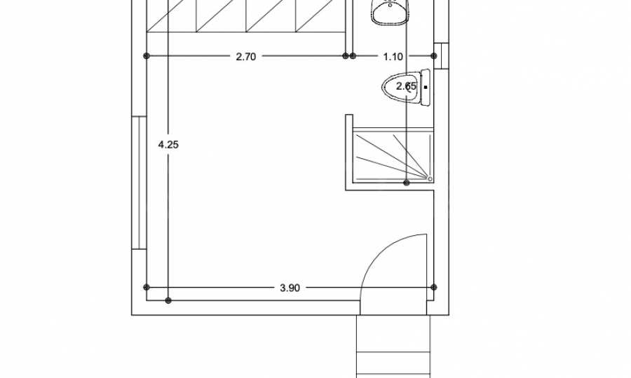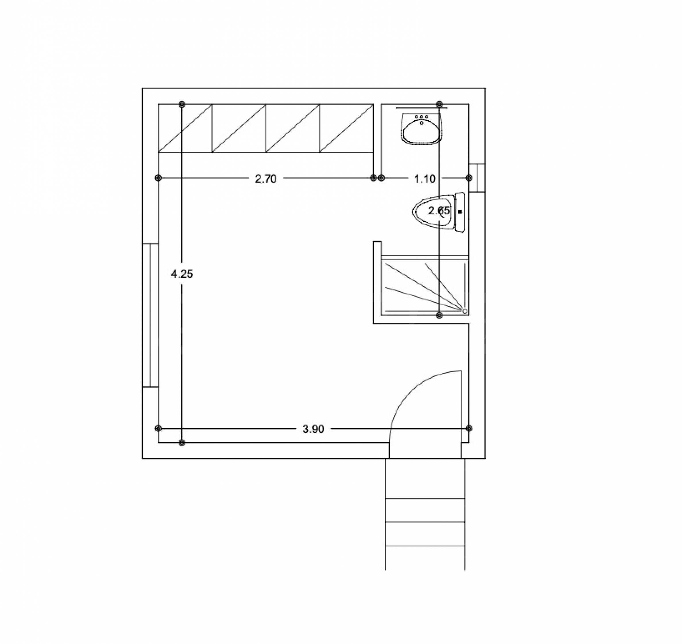 - Drewniane schody wewnętrzne z wbudowanym schowkiem łączące sypialnię na drugim poziomie;