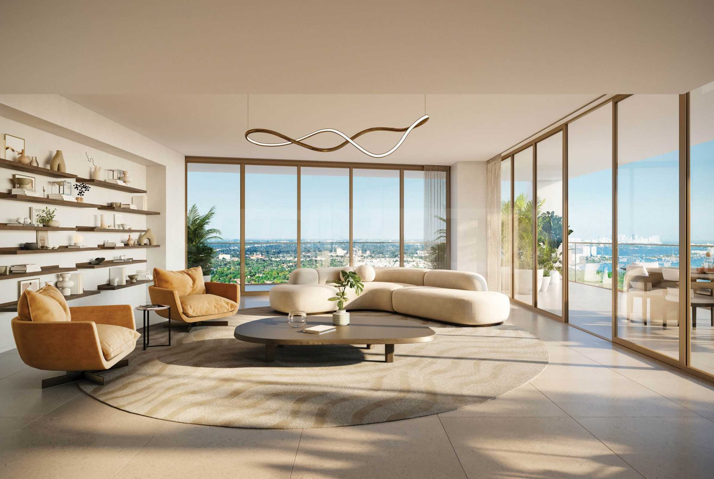 Prezentujemy Państwu przestronny apartament z jedną sypialnią, który jest gotowy stać się prawdziwym domem, w którym będą mogli Państwo tworzyć wspomnienia i przeżywać niezapomniane chwile. Apartament ma powierzchnię całkowitą 99,50 mkw. i można tam dojechać prywatną windą, co gwarantuje spokój i prywatność. Zaplanowano 20,50 m kw. przestrzeni zewnętrznej, a przestronne tarasy oferują zachwycające, 180-stopniowe widoki na zatokę Biscayne, dzielnicę Miami Design District i centrum miasta — to doświadczenie, które zamienia każdy poranek i wieczór w prawdziwy spektakl.