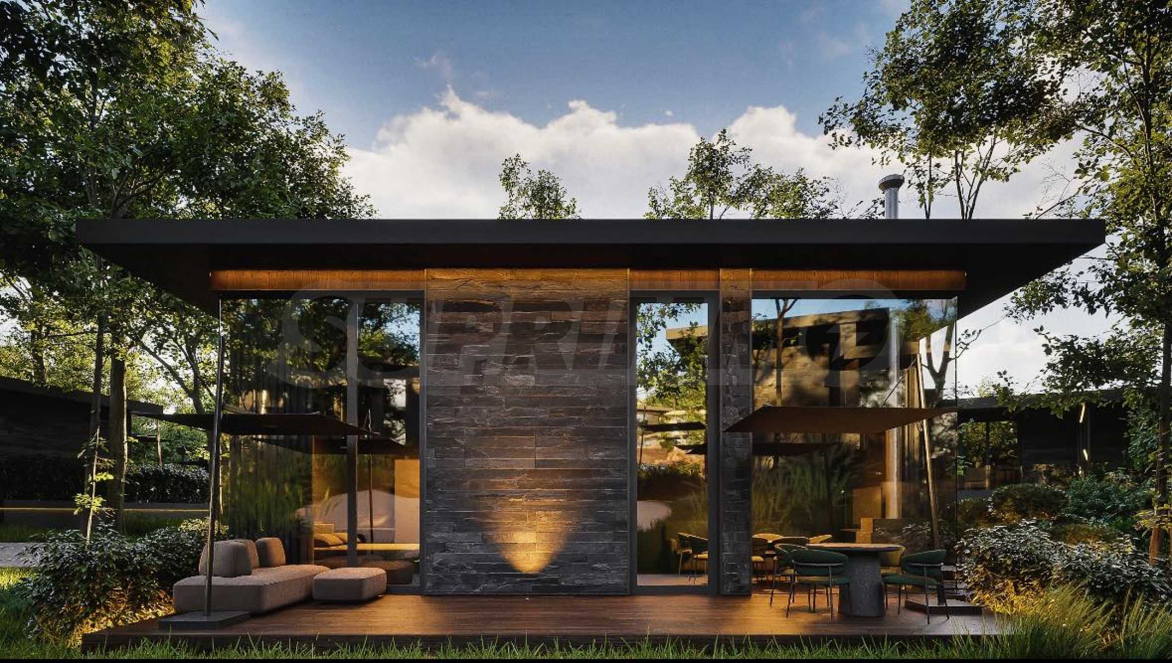Apartament o powierzchni całkowitej 30 mkw. znajduje się na 1 piętrze jednopiętrowej, wolnostojącej willi z panoramicznymi oknami i prywatnym dziedzińcem, co pozwala na nieskrępowane korzystanie z uroków natury.