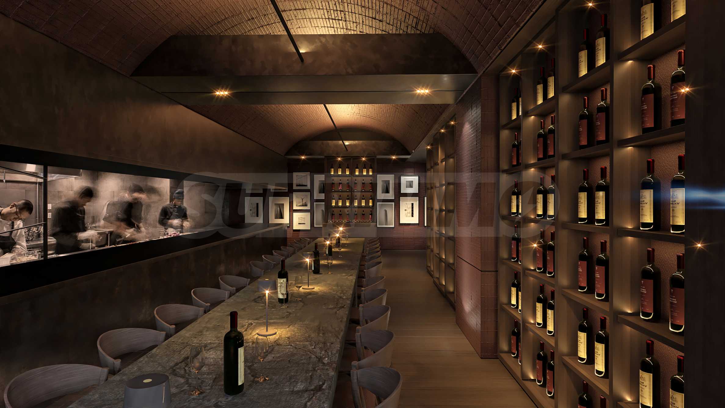 Na parterze znajdziemy stylowe lobby, piekarnię ze świeżo wypiekanym chlebem i wykwintnymi przekąskami, a także jedną z dwóch restauracji stworzonych specjalnie dla kompleksu. Miłośnicy wina docenią starannie wyselekcjonowany wybór win i możliwość degustacji w eleganckim, prywatnym salonie.