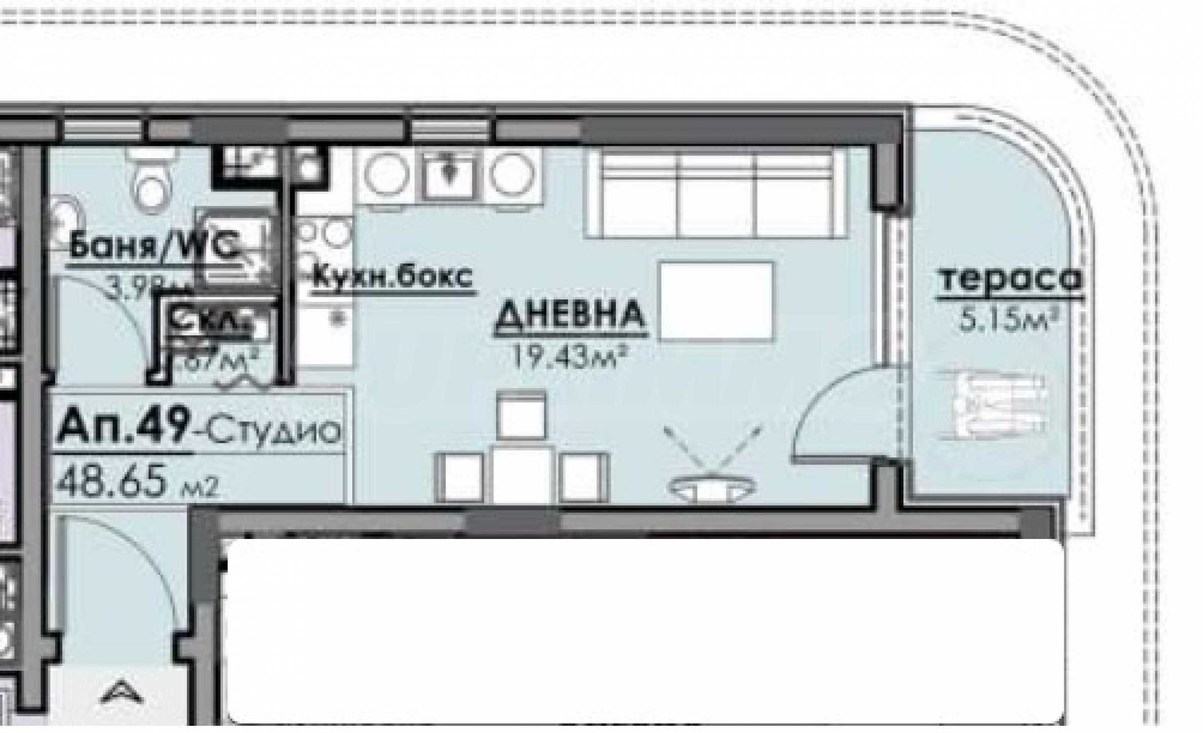 Nieruchomość o powierzchni całkowitej 48,65 m kw., położona na 9. piętrze przy wejściu A, jest wynajmowana w stanie wykończonym zgodnie z bułgarskimi normami budowlanymi.