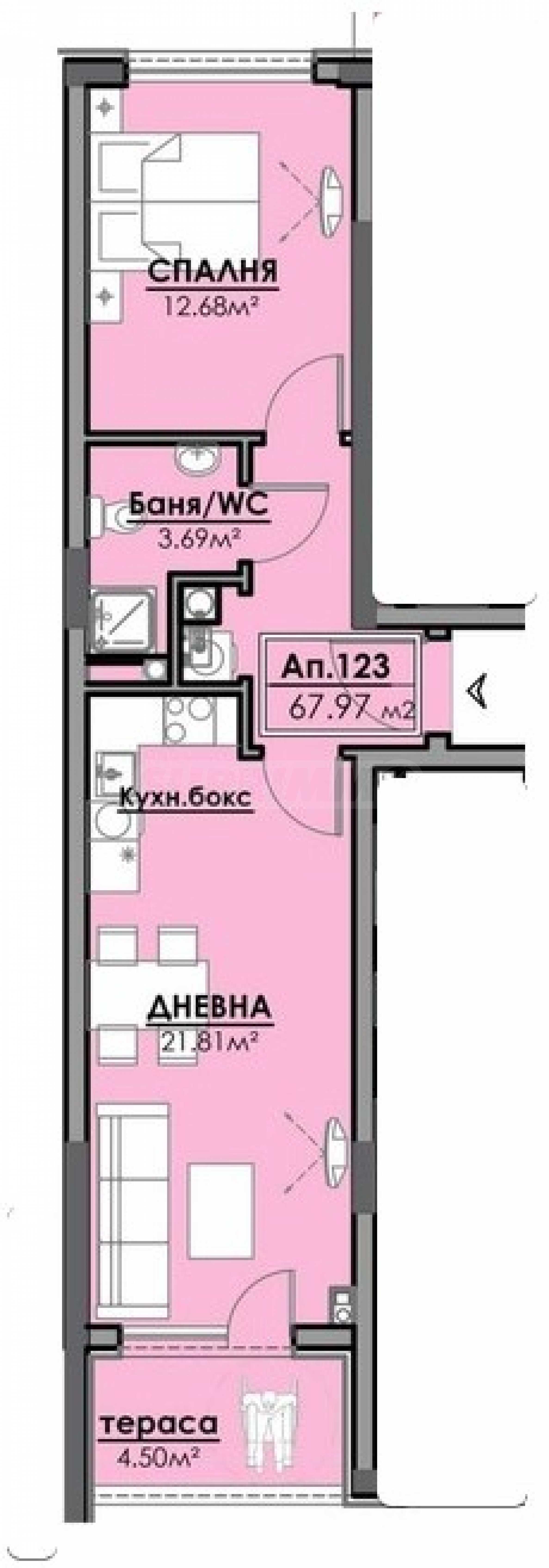 Oferujemy na sprzedaż mieszkanie jednopokojowe w nowoczesnym budynku mieszkalnym, w nowej dzielnicy Burgas - "Madika".
