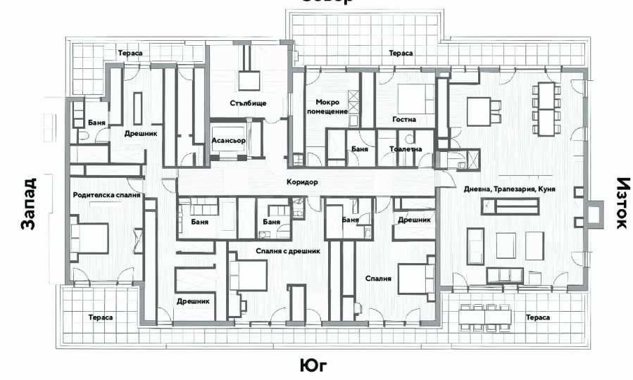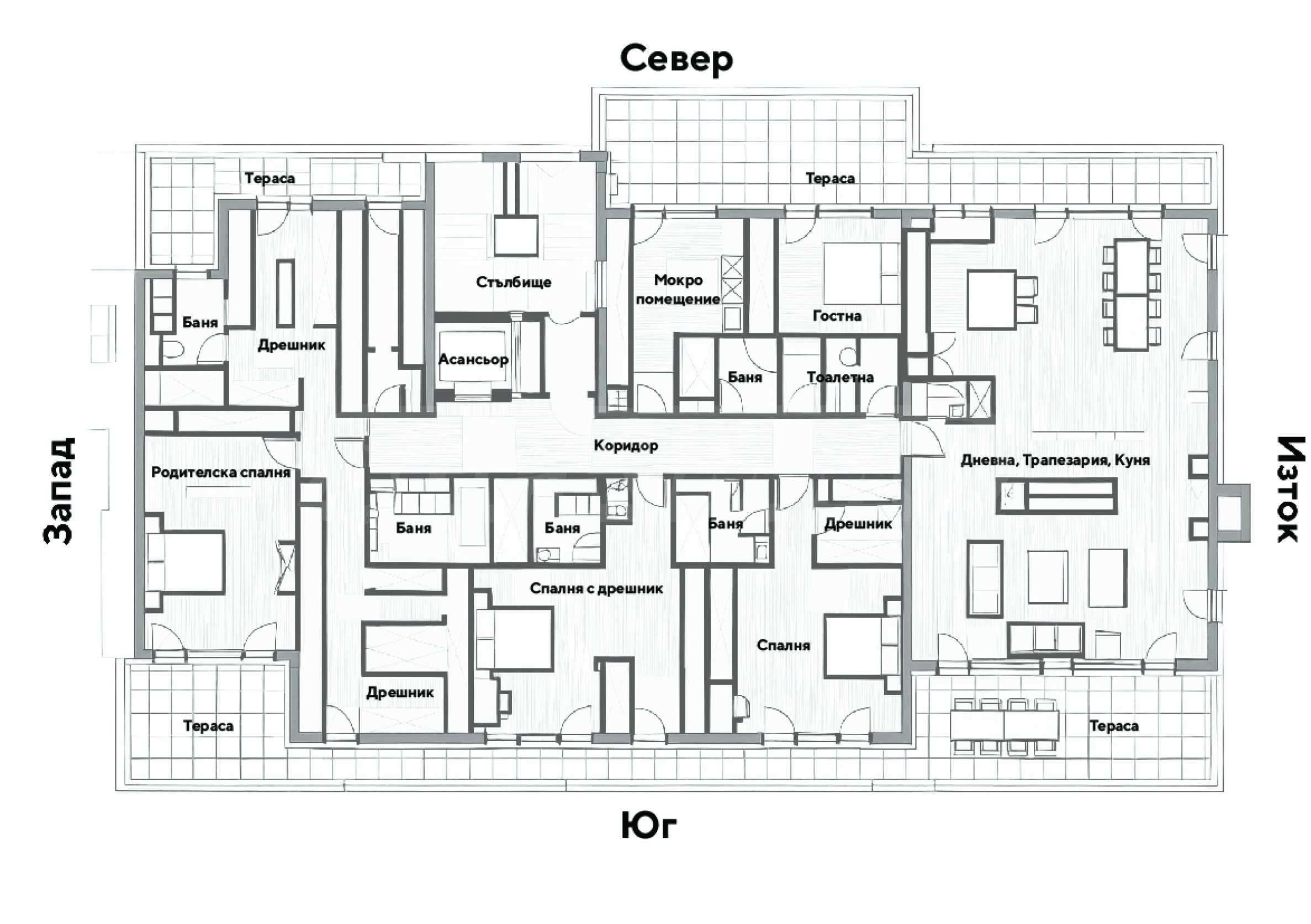 Prezentujemy na sprzedaż imponujący penthouse z panoramicznym widokiem na góry i miasto. Nieruchomość znajduje się w nowym, stylowym budynku przy ul. Akt 16, w prestiżowej dzielnicy Sofii – w bliskim sąsiedztwie gór, zaledwie kilka minut od Paradise Center, South Park i centrum miasta. Lokalizacja zapewnia doskonałą równowagę między spokojem, zielenią a szybkim dostępem do kluczowych punktów stolicy.