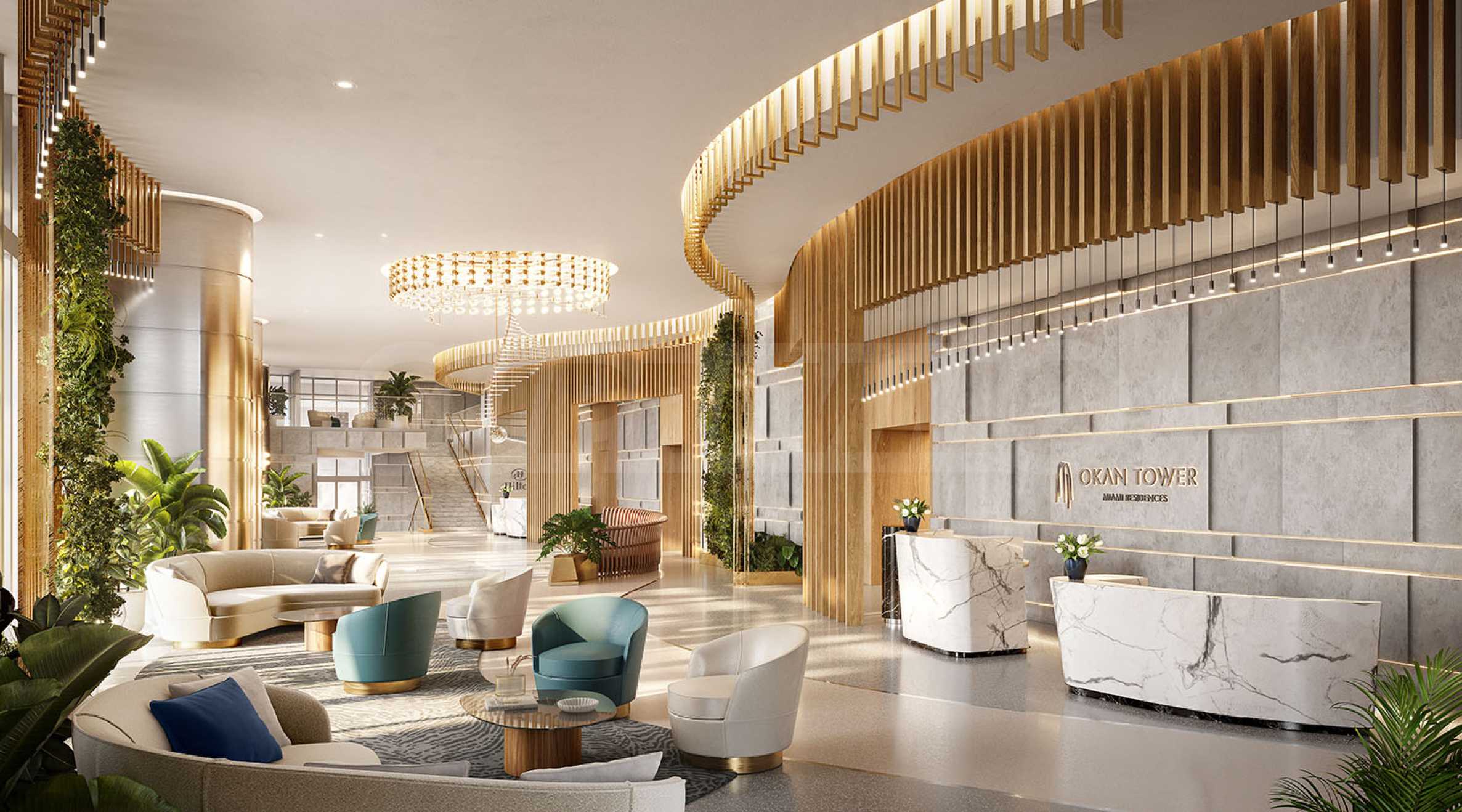 Oprócz wyjątkowej fasady, kompleks zachwyca również nowatorską koncepcją zarządzania apartamentami. Głównym partnerem jest Hilton Hotel , słynący na całym świecie z wysokiej jakości usług, gościnności i ciepłego podejścia do wszystkich gości. W Okan Tower dostępne są dwa rodzaje apartamentów - Hotel Residences i Sky Residences. Oba typy nieruchomości oferują przyjemną i przytulną atmosferę, a także różnorodne korzyści i możliwości zwrotu z poczynionych inwestycji.