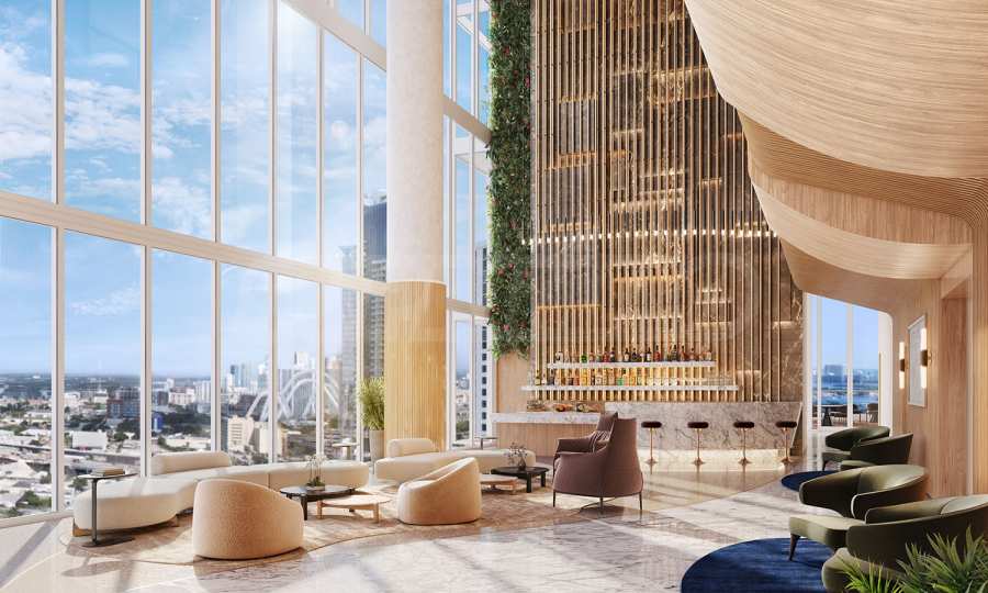Projekt budynku został opracowany przez Behar Font & Partners - jedną z wiodących firm zajmujących się projektowaniem budynków w Miami. Ich talent i wizjonerskie myślenie w połączeniu z kreatywnością są widoczne w Okan Tower – budynku, który łączy w sobie innowacyjną architekturę, oszałamiającą fasadę i ponadczasową wizję. Budynek ma 80 pięter i jest wyposażony w szybkobieżne windy, dzięki którym można szybko i łatwo dostać się nawet na wyższe piętra. Budynek zaprojektowano tak, aby zapewnić niezbędne udogodnienia i usługi, a także spokój ducha mieszkańcom obu części budynku. Wyznaczono dwa oddzielne hole - jeden dla części hotelowej, drugi dla apartamentów Sky Residences, dzięki czemu wyeliminowano tłok i zapewniono spokój właścicielom obu typów apartamentów. Piętra, na których znajdują się obiekty, są również oddzielne, dzięki czemu każdy pensjonariusz ma własną przestrzeń.