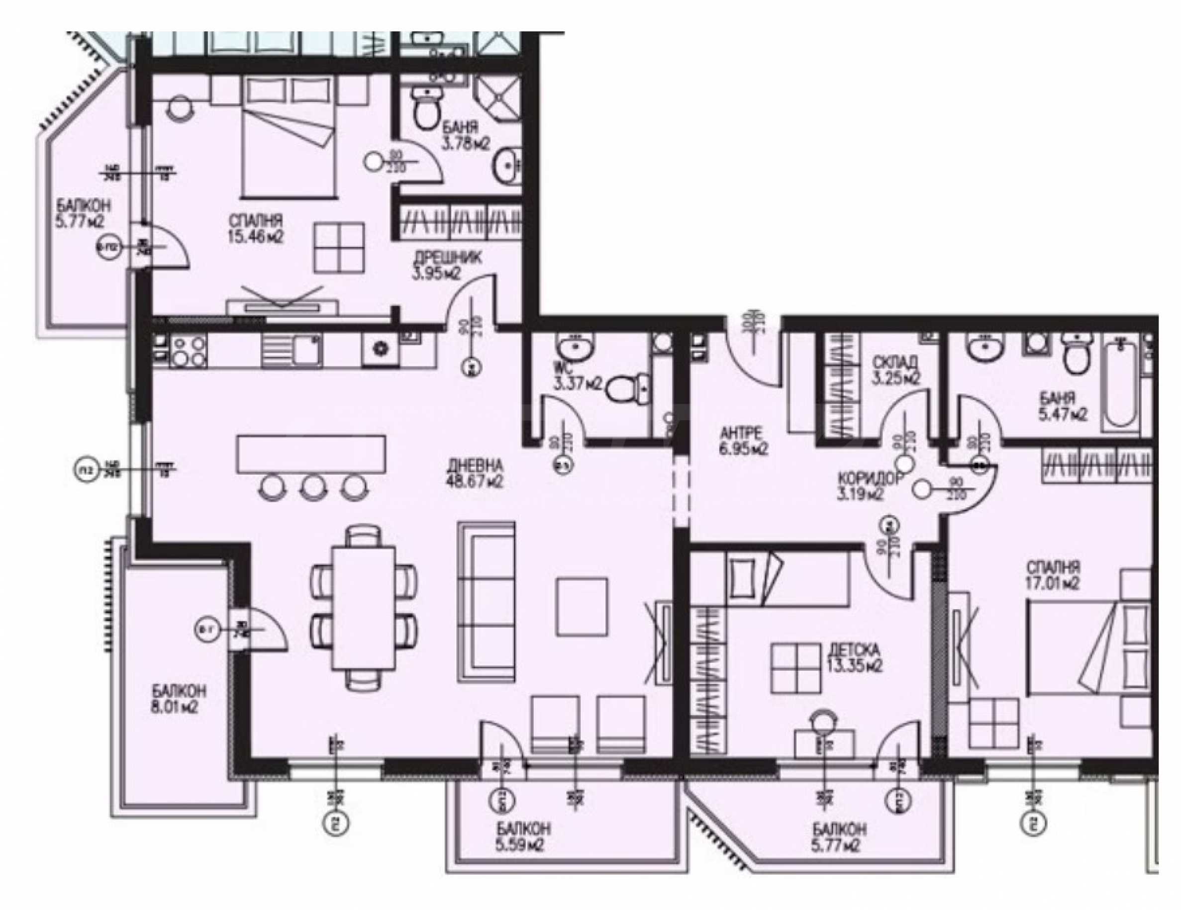 Prezentujemy nowe, czteropokojowe mieszkanie w nowo wybudowanym, butikowym budynku o prestiżowej lokalizacji, w preferowanej dzielnicy „Dragalevtsi” u podnóża Góry Witosza. Budynek jest oddalony o minutę jazdy samochodem od obwodnicy, w pobliżu przyszłej stacji metra oraz supermarketów Mall Paradise, Fantastico i Lidl.